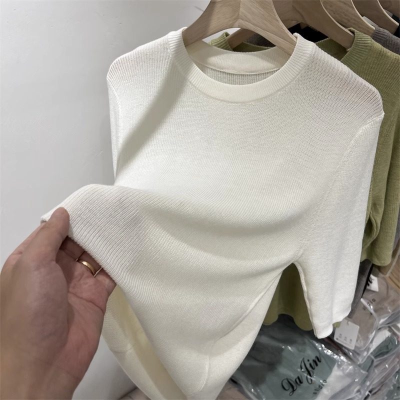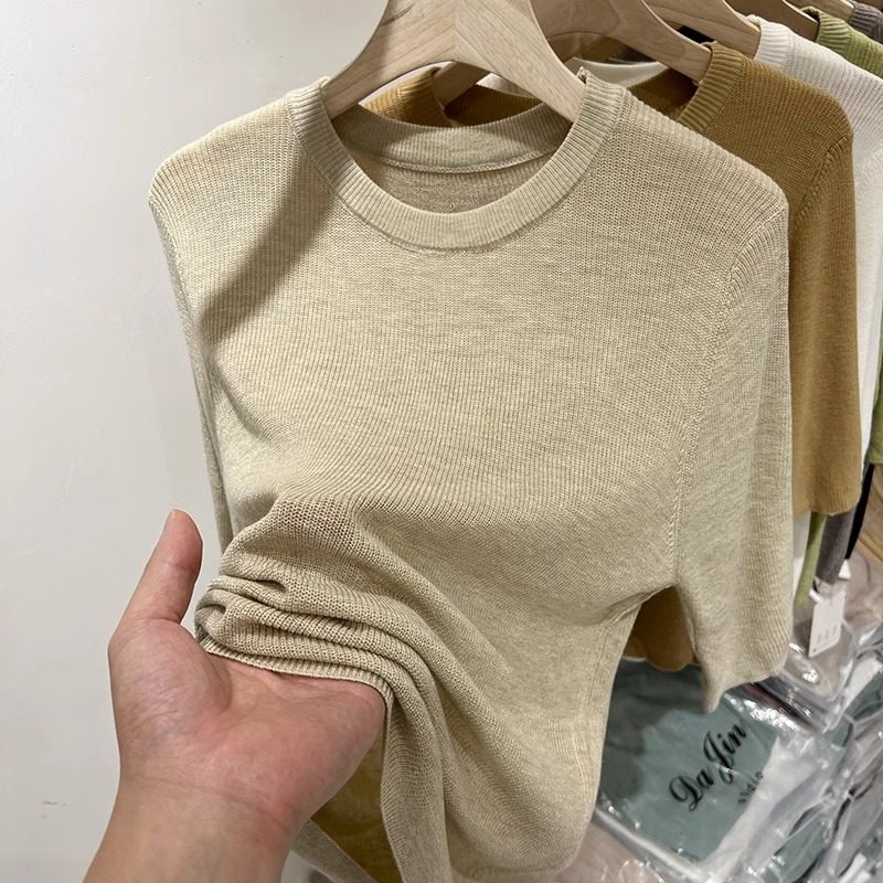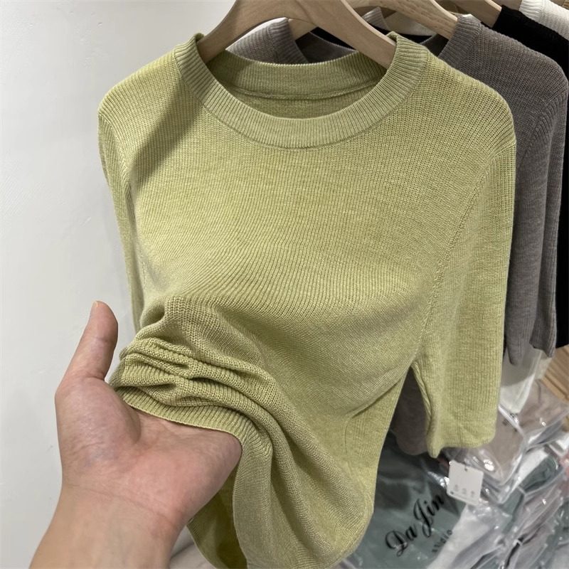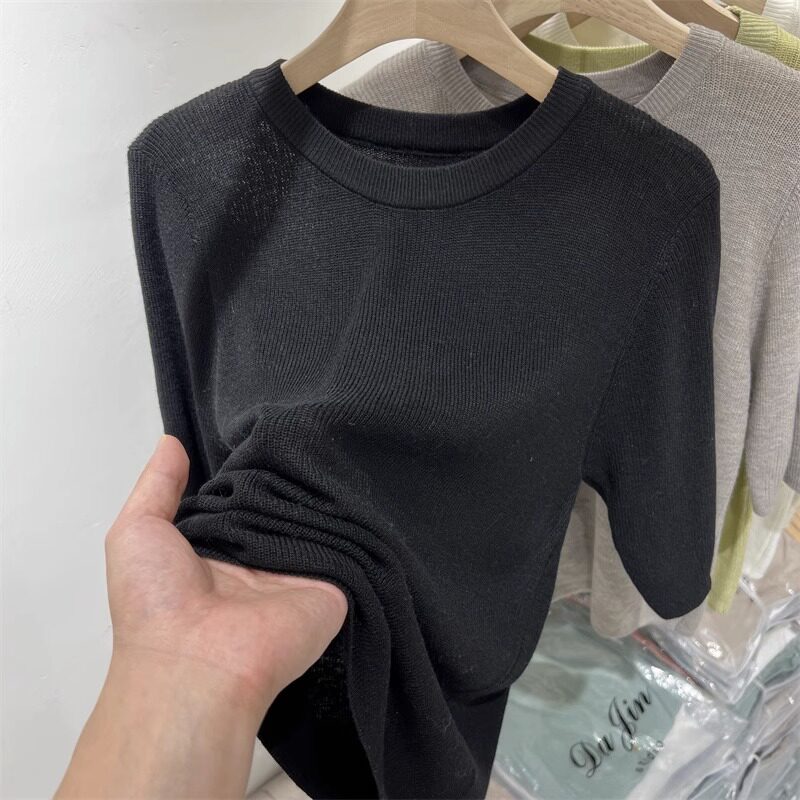 修身 女2025秋冬新款 软糯薄款 针织衫 上衣 圆领中袖 内搭五分袖 打底衫