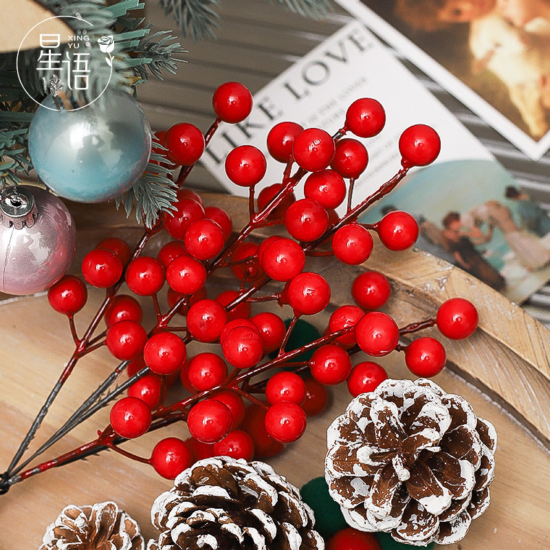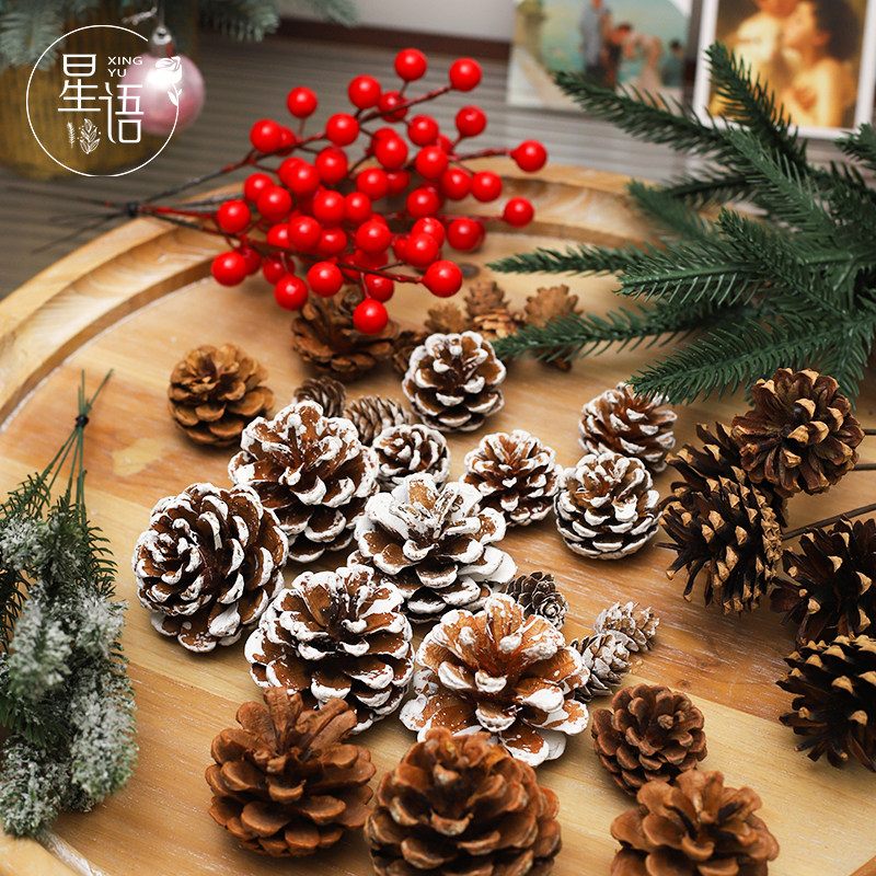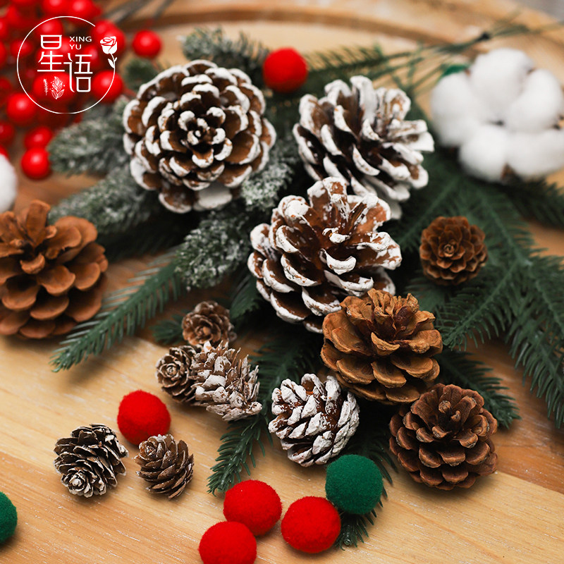 圣诞节装 饰品 饰品仿真冬青松果松枝花艺DIY材料干棉花花束礼盒装