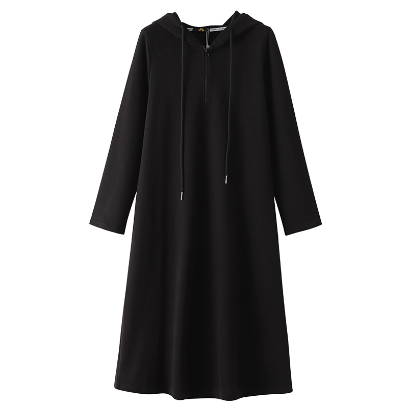 连帽卫衣裙慵懒休闲连衣裙 胖m大胸围加绒拉链长款 300斤特大码 女装