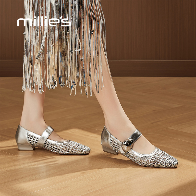 女 羊皮芭蕾玛丽珍单鞋 董洁董璇小酒窝同款 真美诗摩卡慕斯25秋新款