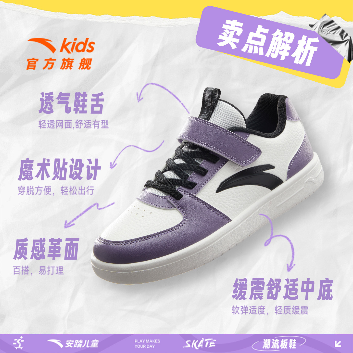 休闲鞋 大童学生春秋运动鞋 2026春季 女童低帮板鞋 新款 安踏儿童鞋