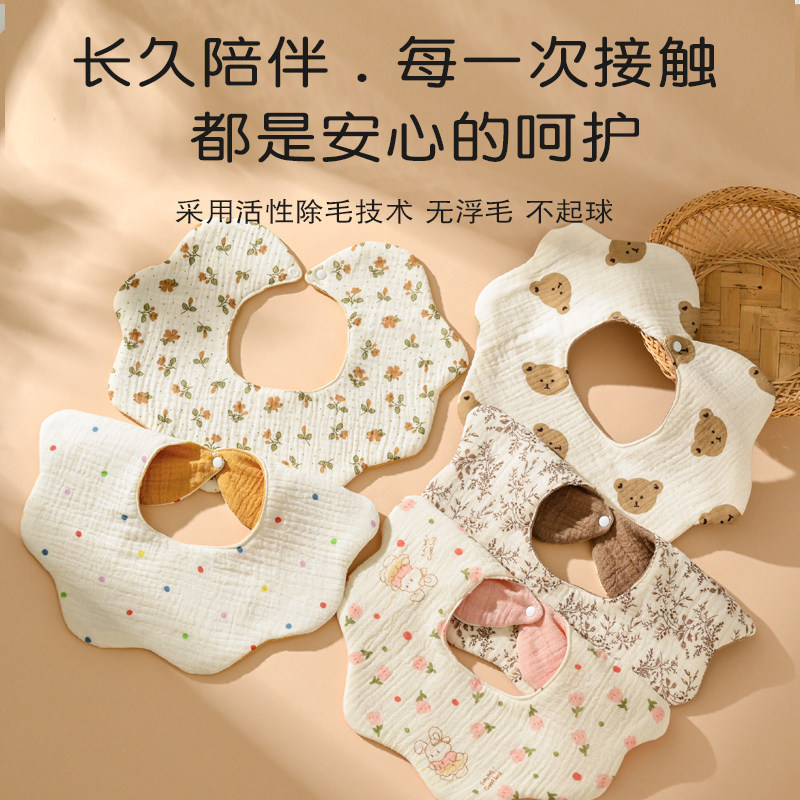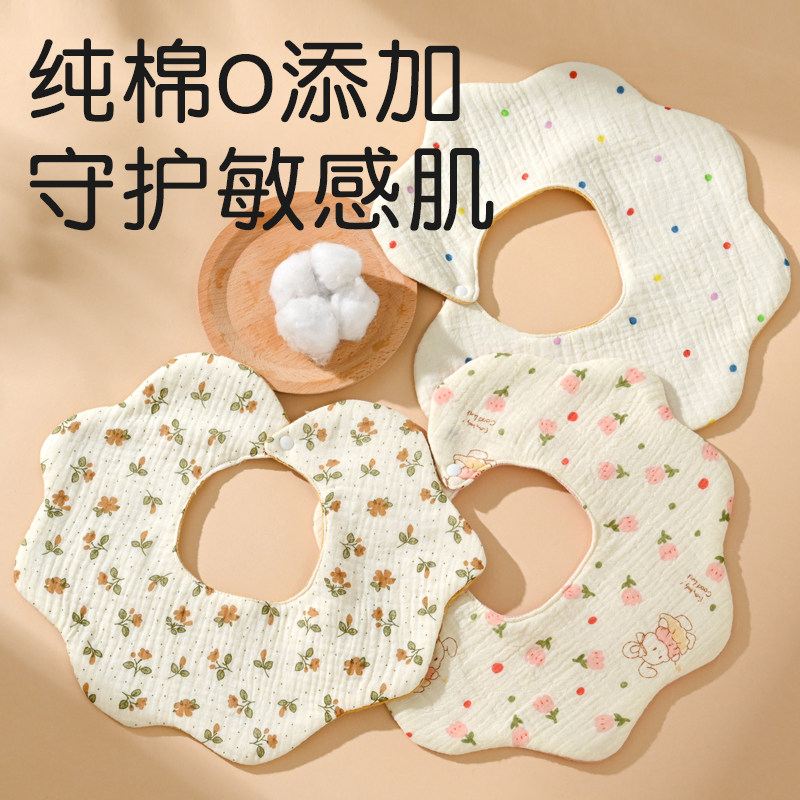 婴儿防水围嘴新生儿口水巾ins风花瓣型宝宝纯棉纱布围兜防吐奶巾