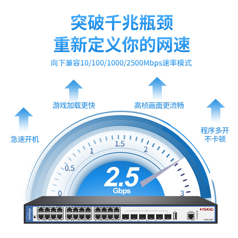 鸿升HSGQ三层核心交换机2.5G网口PoE交换机10G万兆光口1U机架式 网管型交换机企业级云管理远程供电全光交换机
