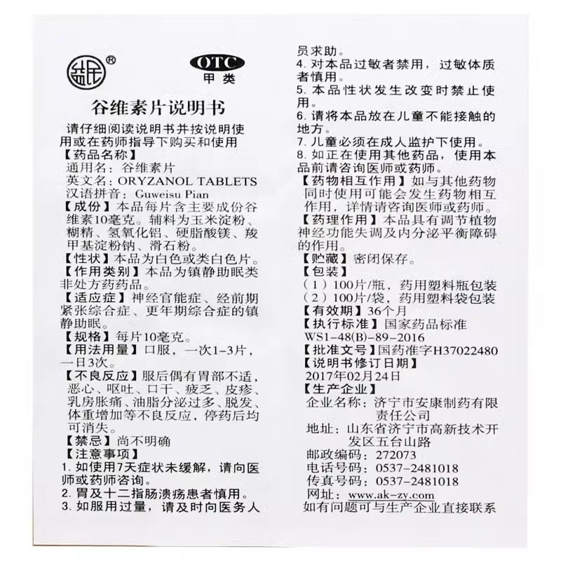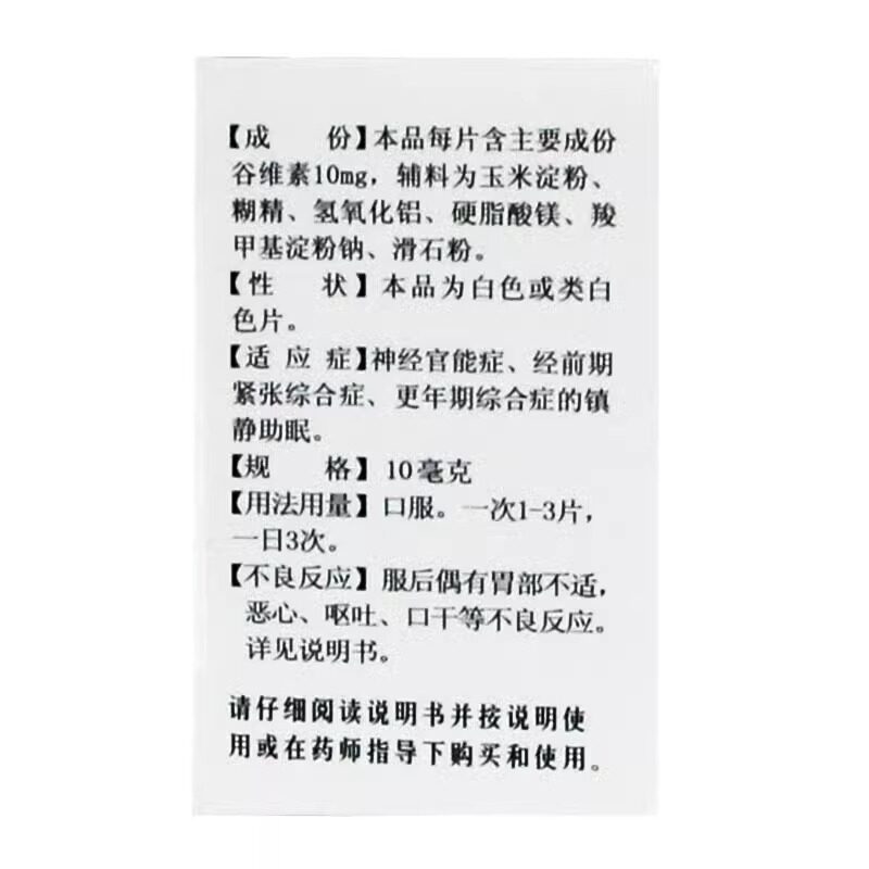 盒 益民 1瓶 100片 镇静助眠神经官能症更年期综合 谷维素片10mg