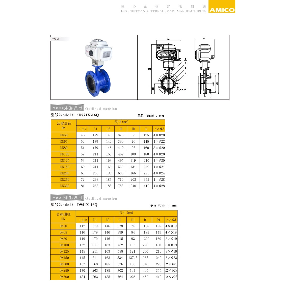 正品 16Q法兰电动蝶阀DN5080100125150200250 埃美柯9831铸铁D941X