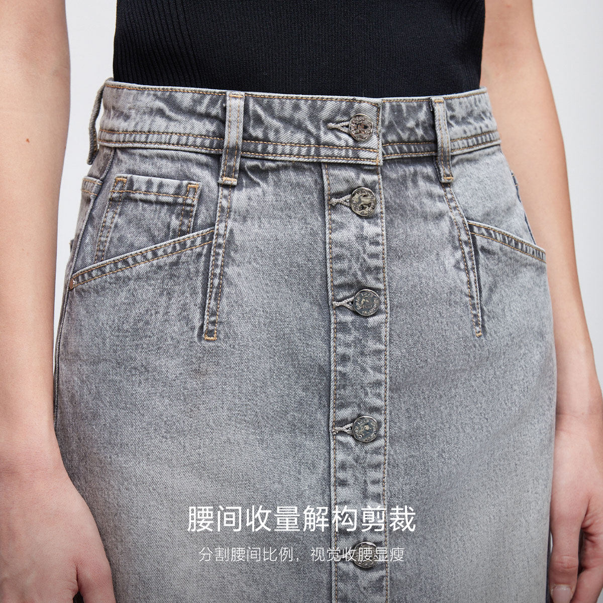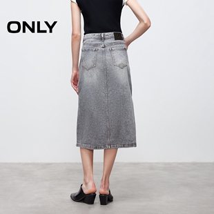 复古磨白水洗高腰显瘦A字牛仔中长裙半身裙女 春款 ONLY奥莱