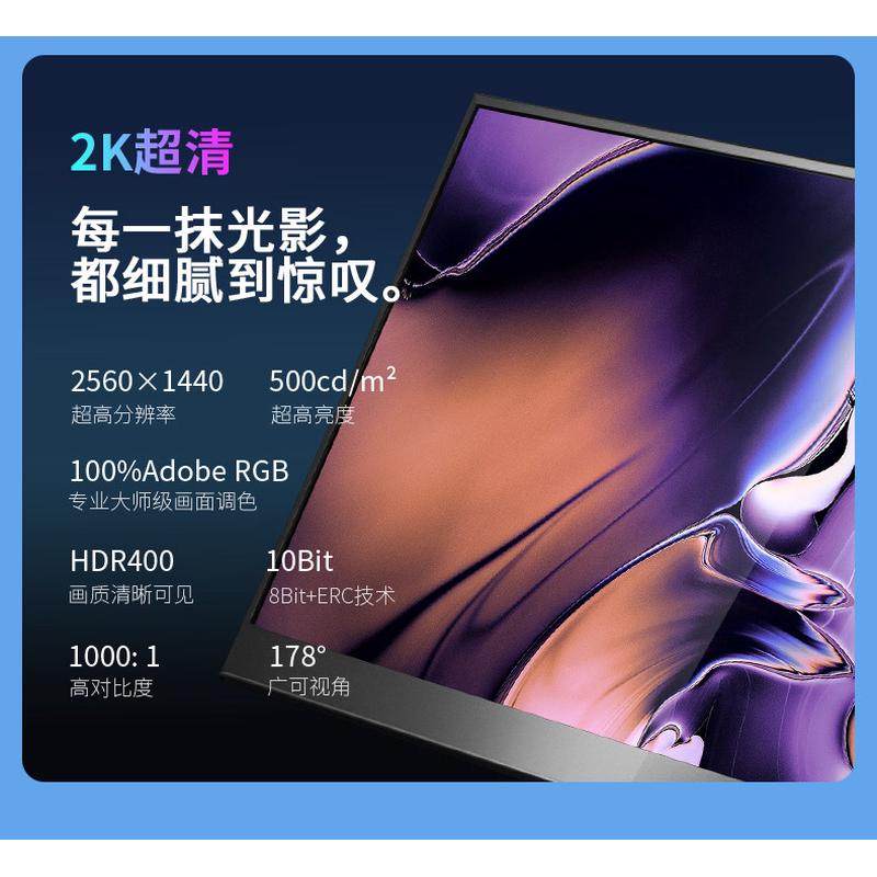 16寸2K便携式 IPS高亮100%sRGB显示器外接显示器游戏机PS4显示屏幕