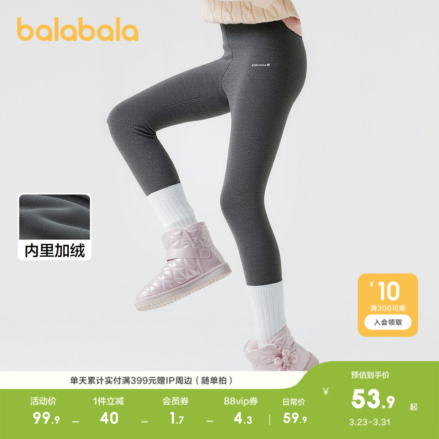 印花紧身裤 女童秋冬加绒保暖长裤 舒适百搭 儿童打底裤 巴拉巴拉童装