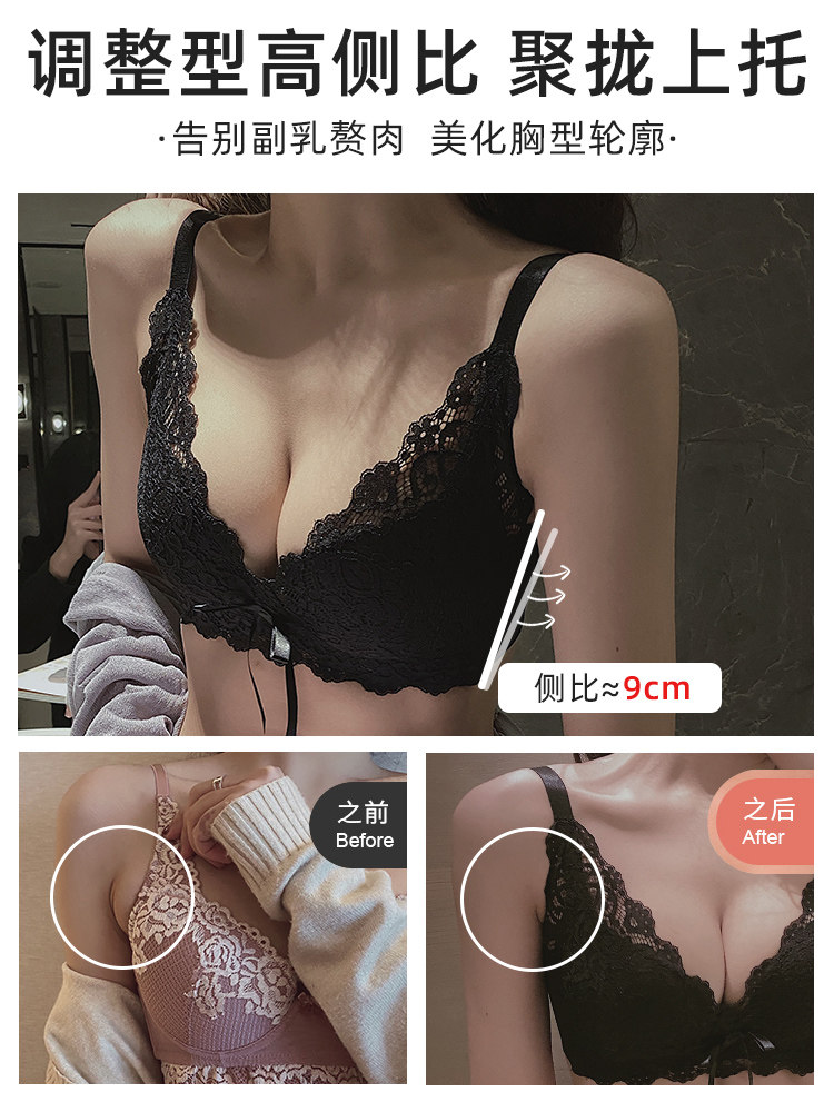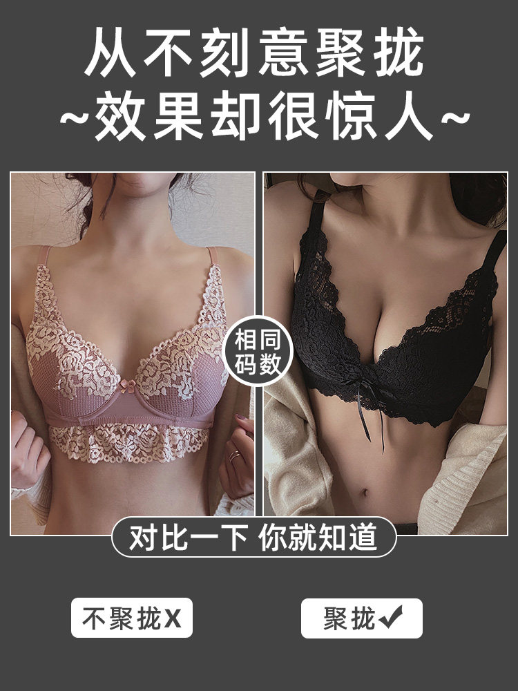 内衣女无钢圈小胸聚拢调整型文胸收副乳上托防下垂胸罩蕾丝套装
