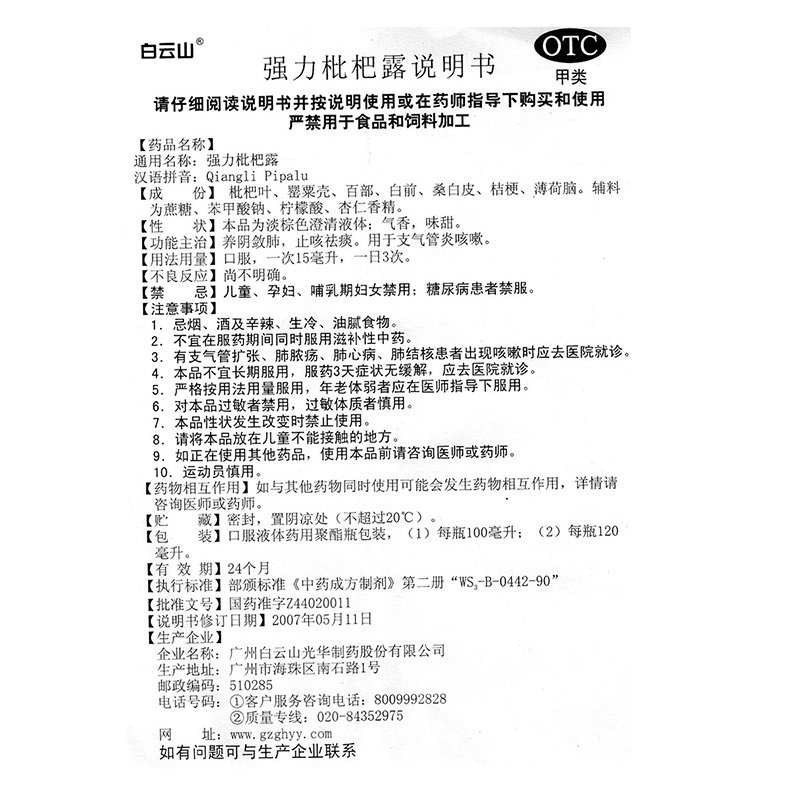 白云山强力枇杷露120ml止咳糖浆膏感冒咳嗽药化痰祛痰润肺消炎