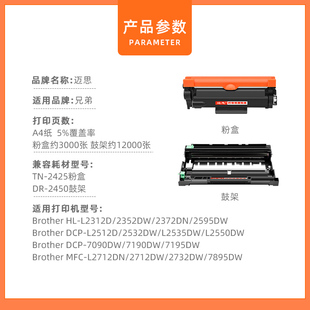 L2535DW 迈思TN2425粉盒适用兄弟DCP 7195DW打印机硒鼓DCP 7190DW L2550DW墨盒TN2412墨粉盒DR2450 7090DW