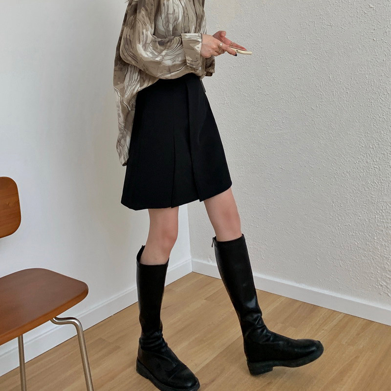 胖妹妹梨形身材半身裙女大码 包臀裙 穿搭遮胯百褶黑色a字短裙夏季