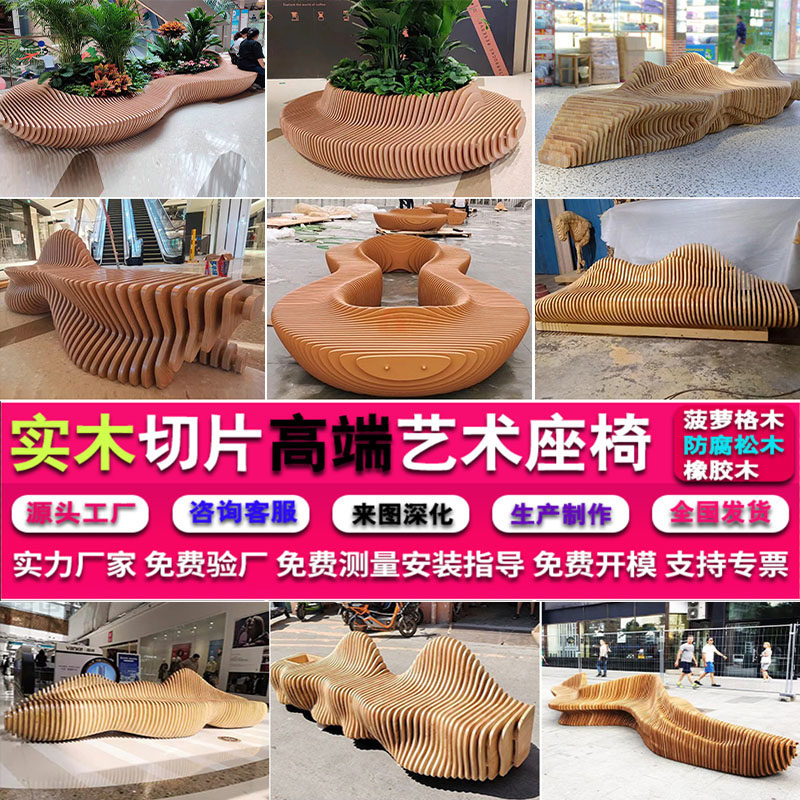 实木切片座椅定制防腐木菠萝格坐凳户外商场公共休息等候区休闲椅