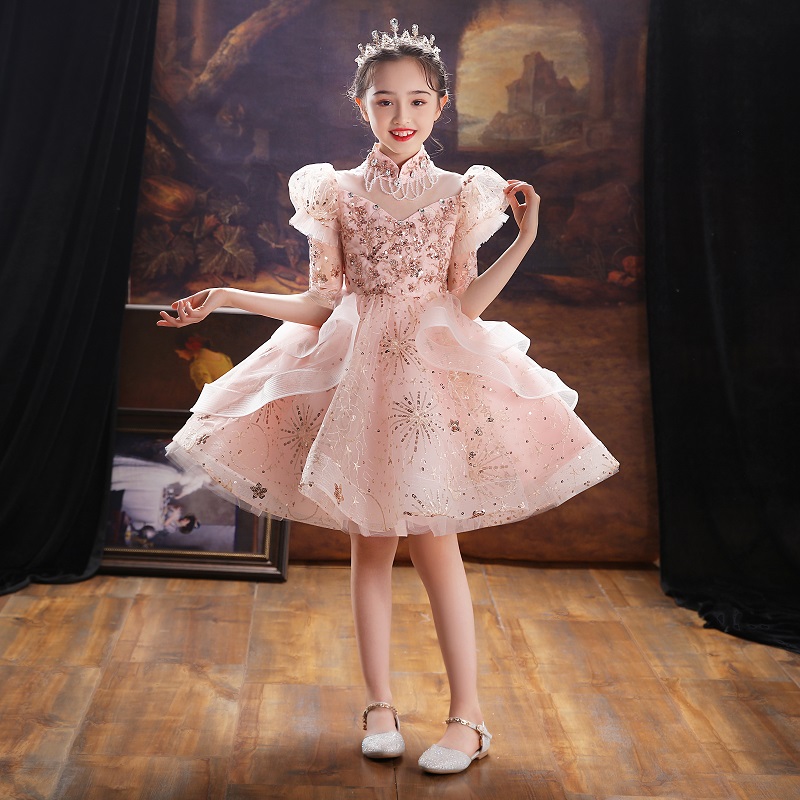 钢琴演奏礼服女童轻奢小众高端儿童小主持人花童生日公主裙演出服