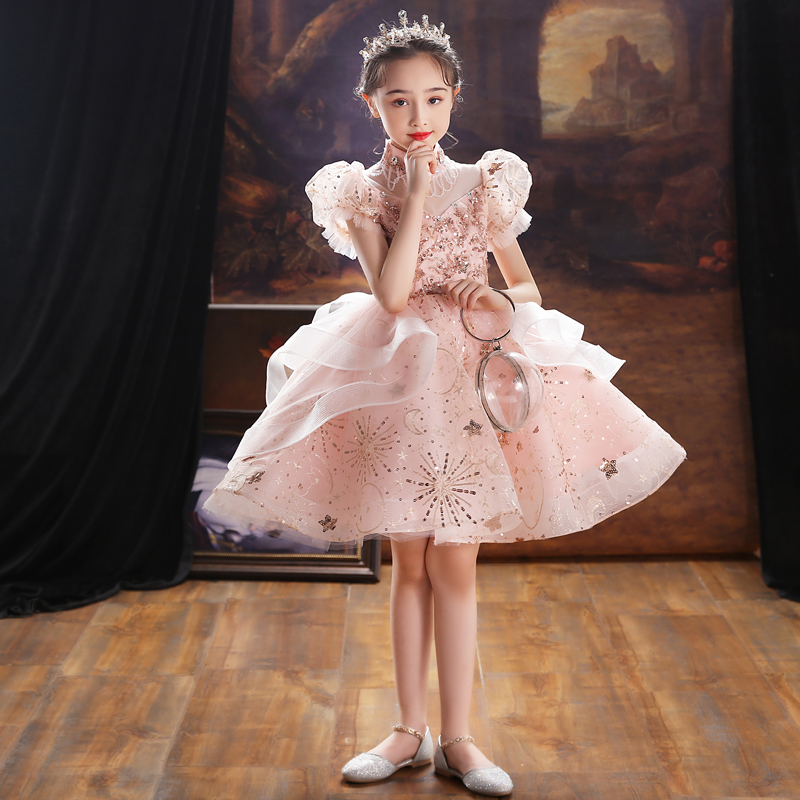 夏新女童百天周岁礼服洋气公主裙连衣裙婚纱表演裙走秀花童蓬蓬裙