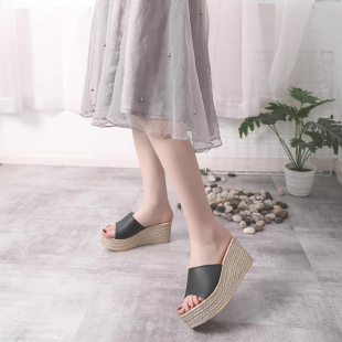 婚鞋 厚底高跟婚纱大码 女夏外穿中跟增高松糕鞋 婚礼神器坡跟凉拖鞋