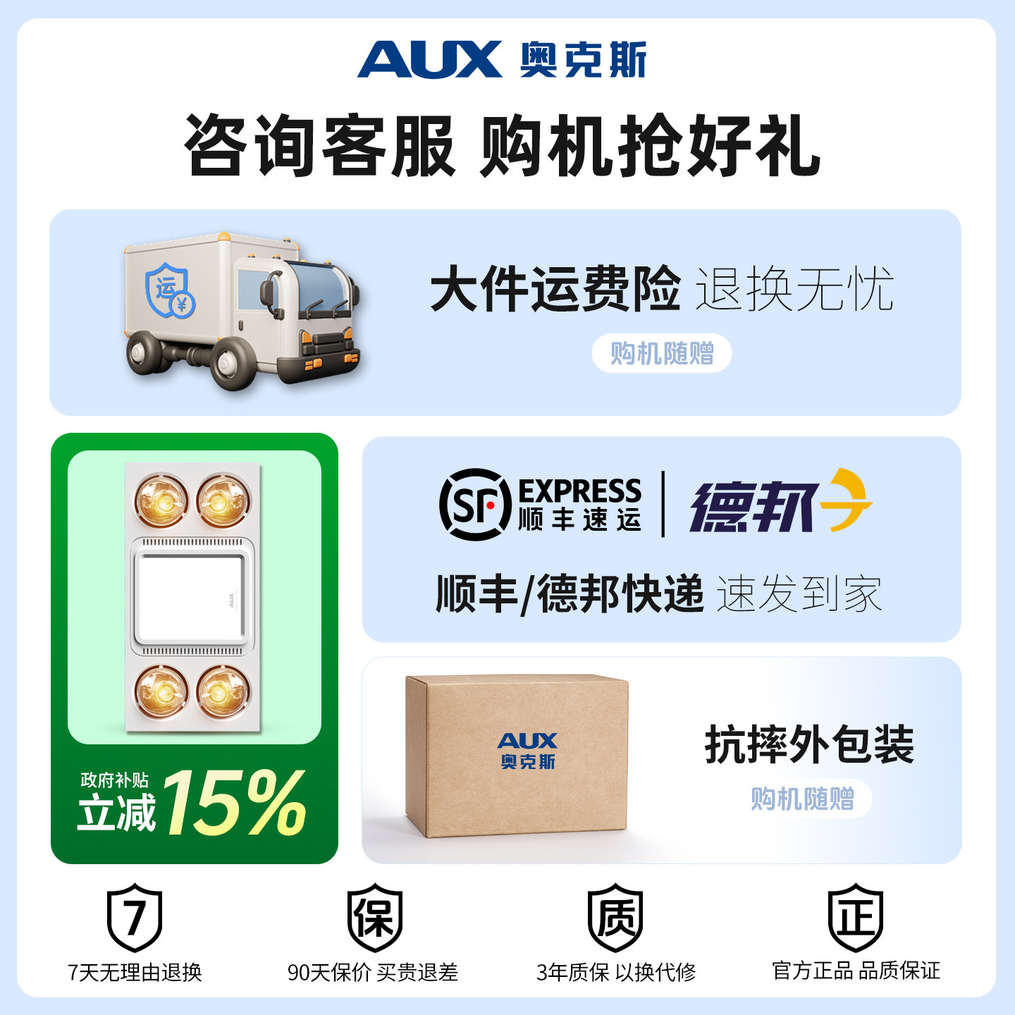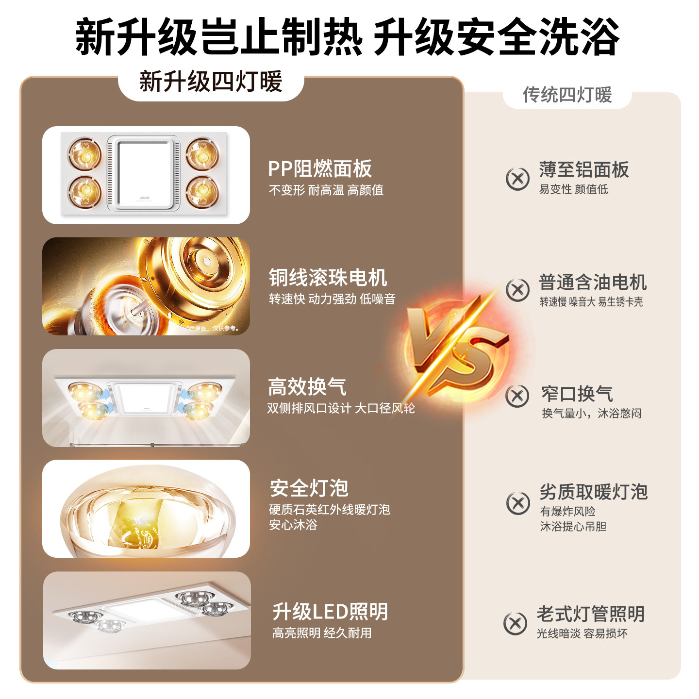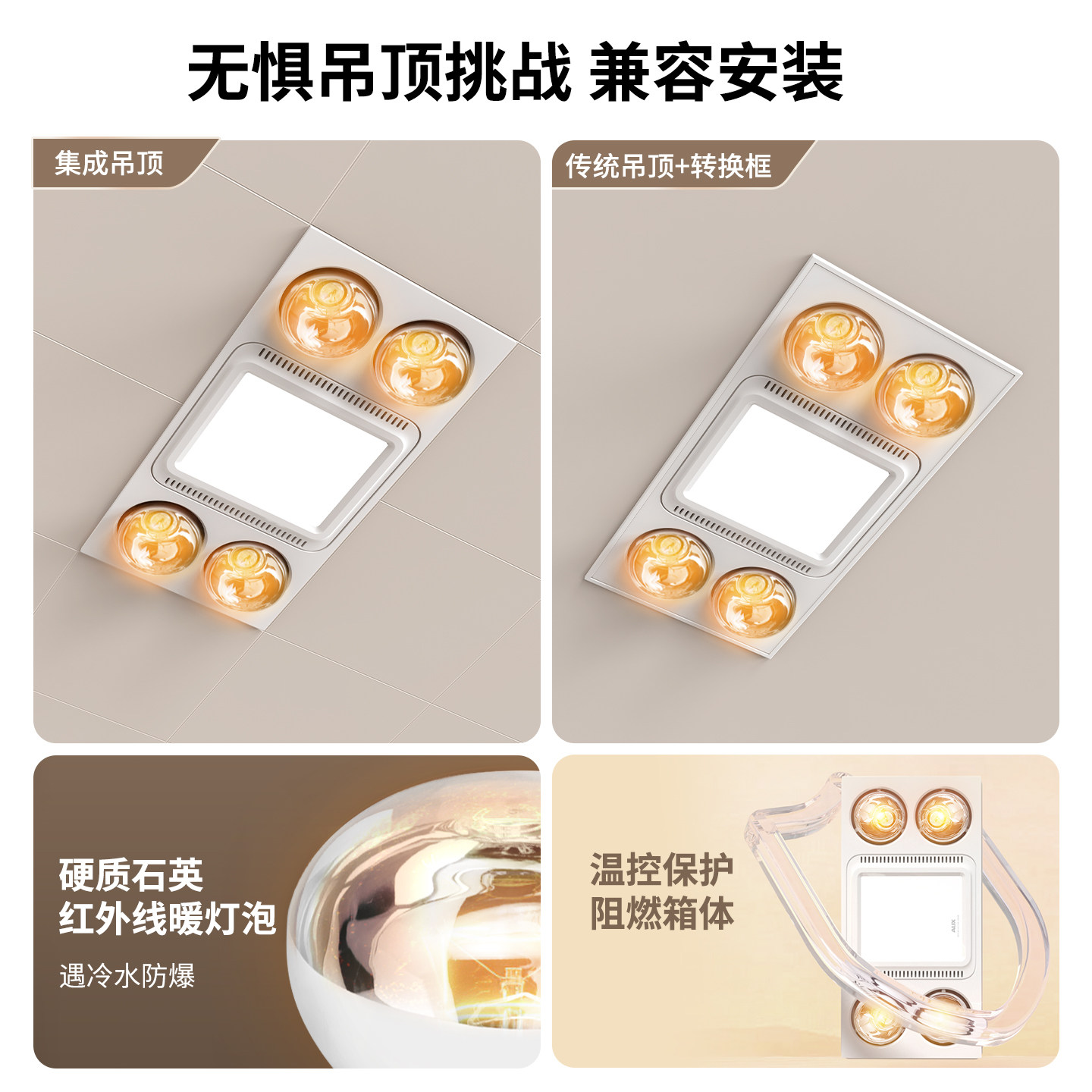 奥克斯灯暖浴霸集成吊顶卫生间浴室排气扇照明一体30X60灯泡取暖