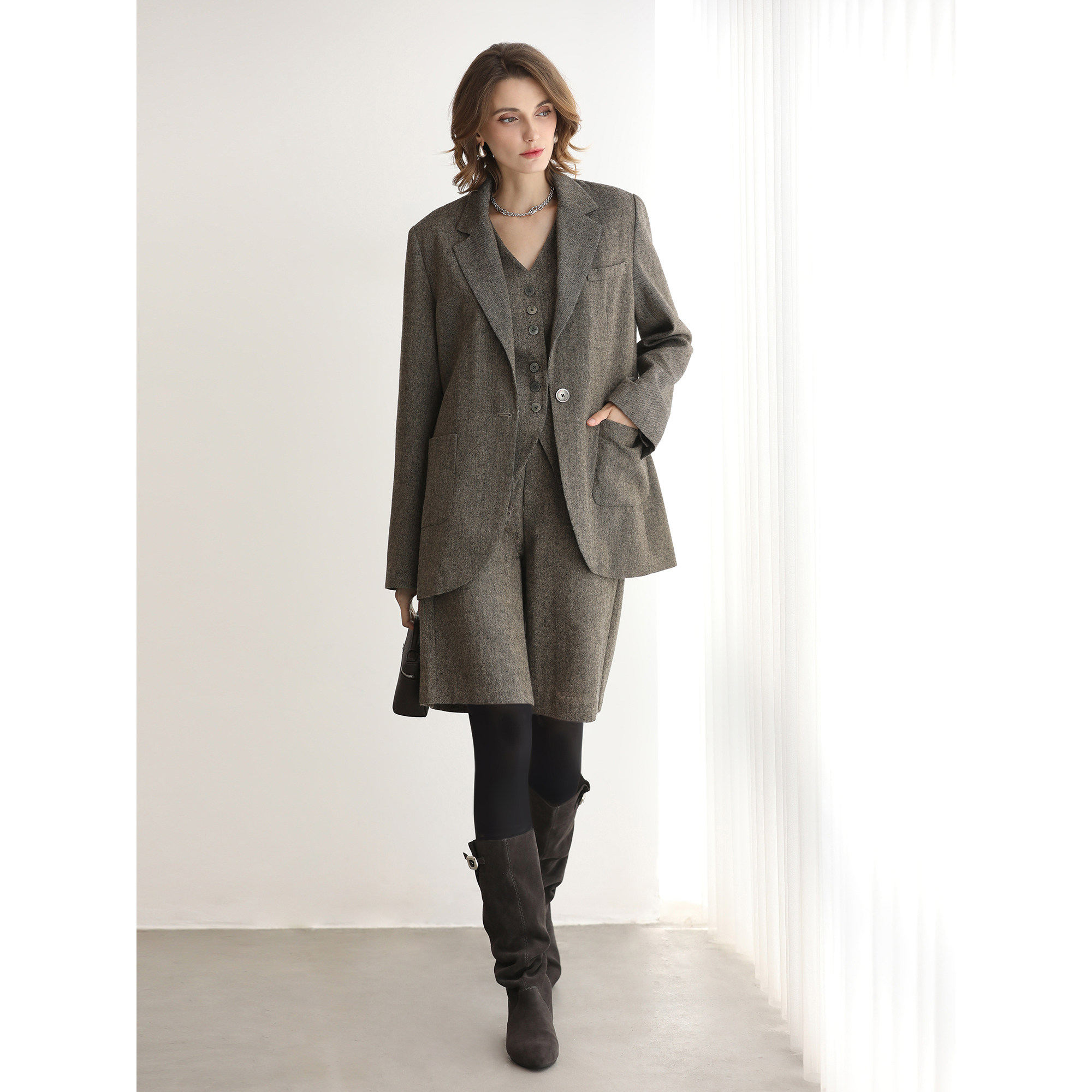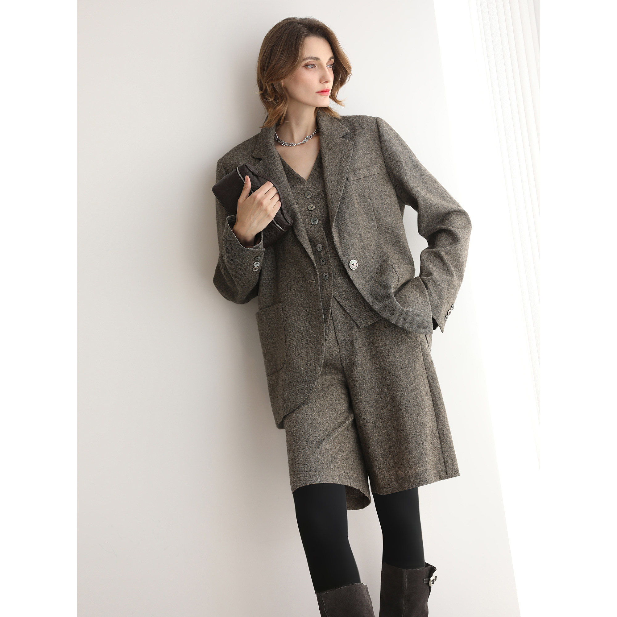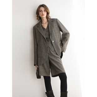 老钱风高级感麂皮绒宽松复古无扣无领西装 INSOMNIA失眠者 秋冬季