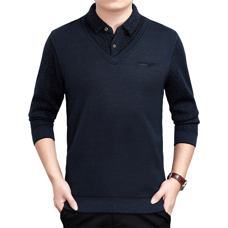 毛衫 啄木鸟假两件混纺毛衣男2025新款 领肌理感针织衫 衬衫 潮 秋冬季