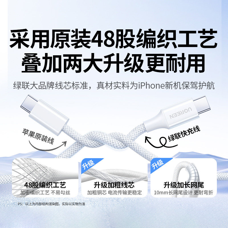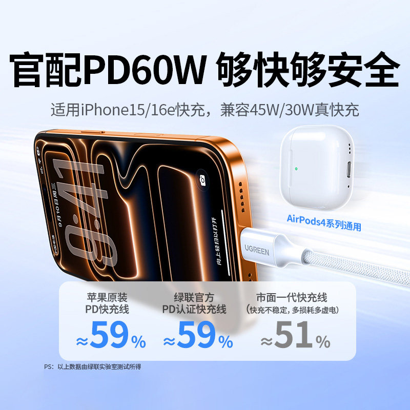 转ctoc口 airpods4ipad华为手机充电宝线器双typec官方数据线60W原快充套装 绿联适用苹果17 16iPhone15promax