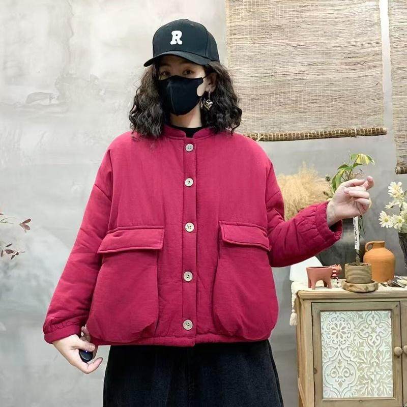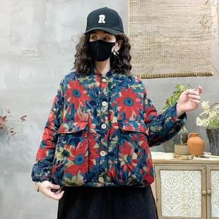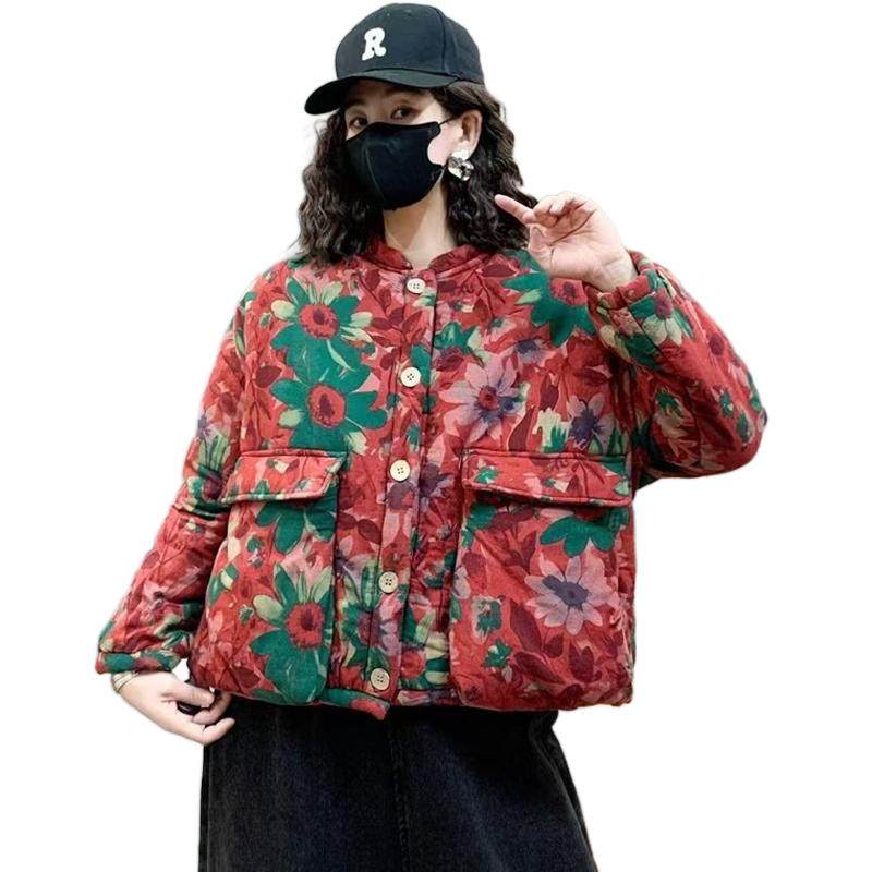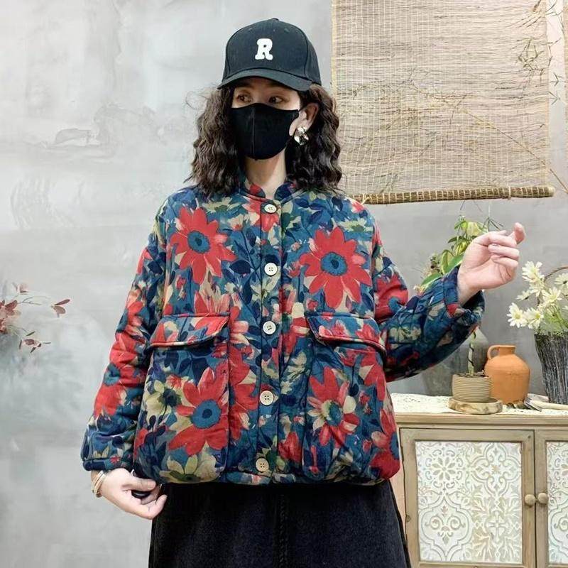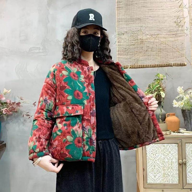 冬季 加绒加厚碎花棉衣外套复古文艺休闲百搭大口袋棉袄 新宽松大码