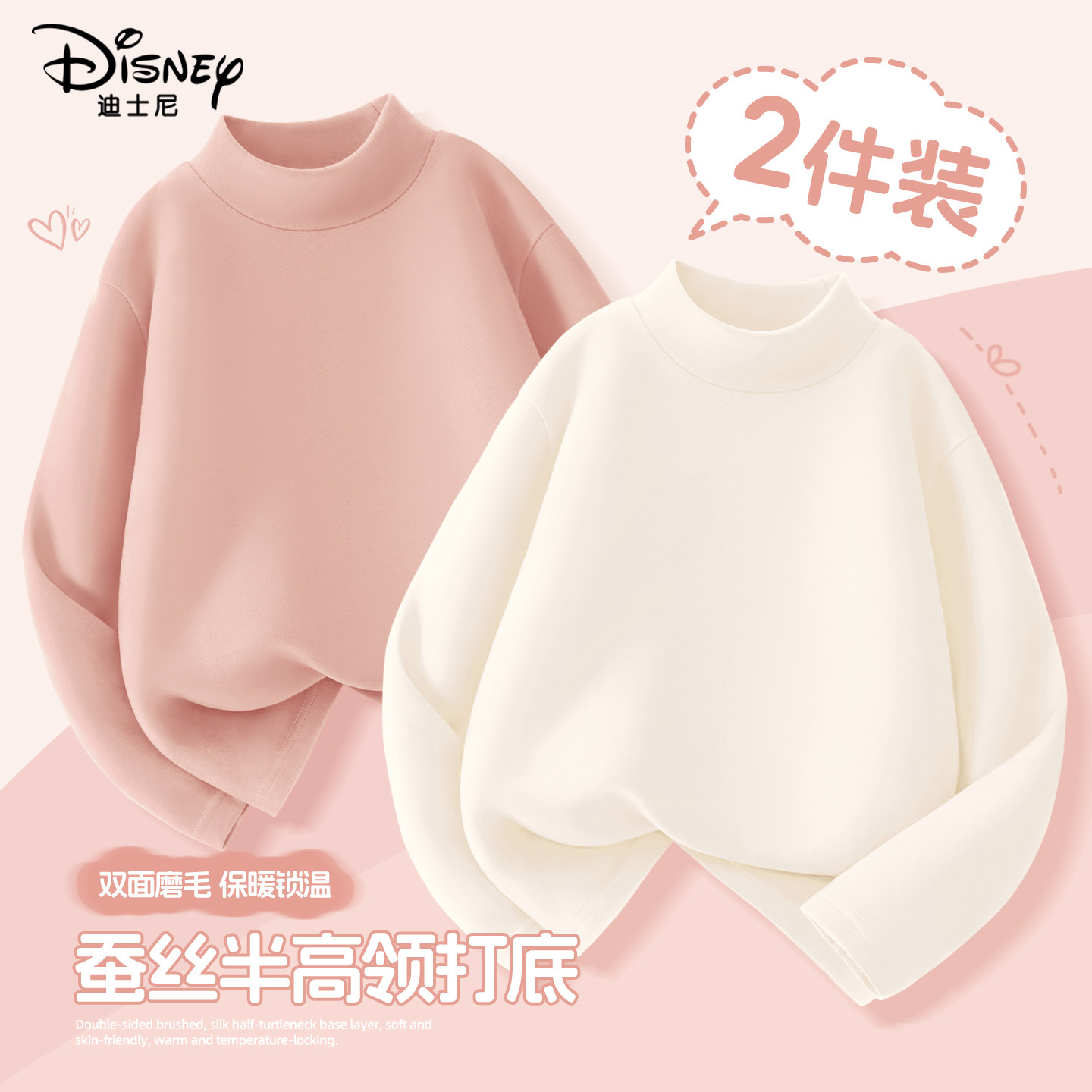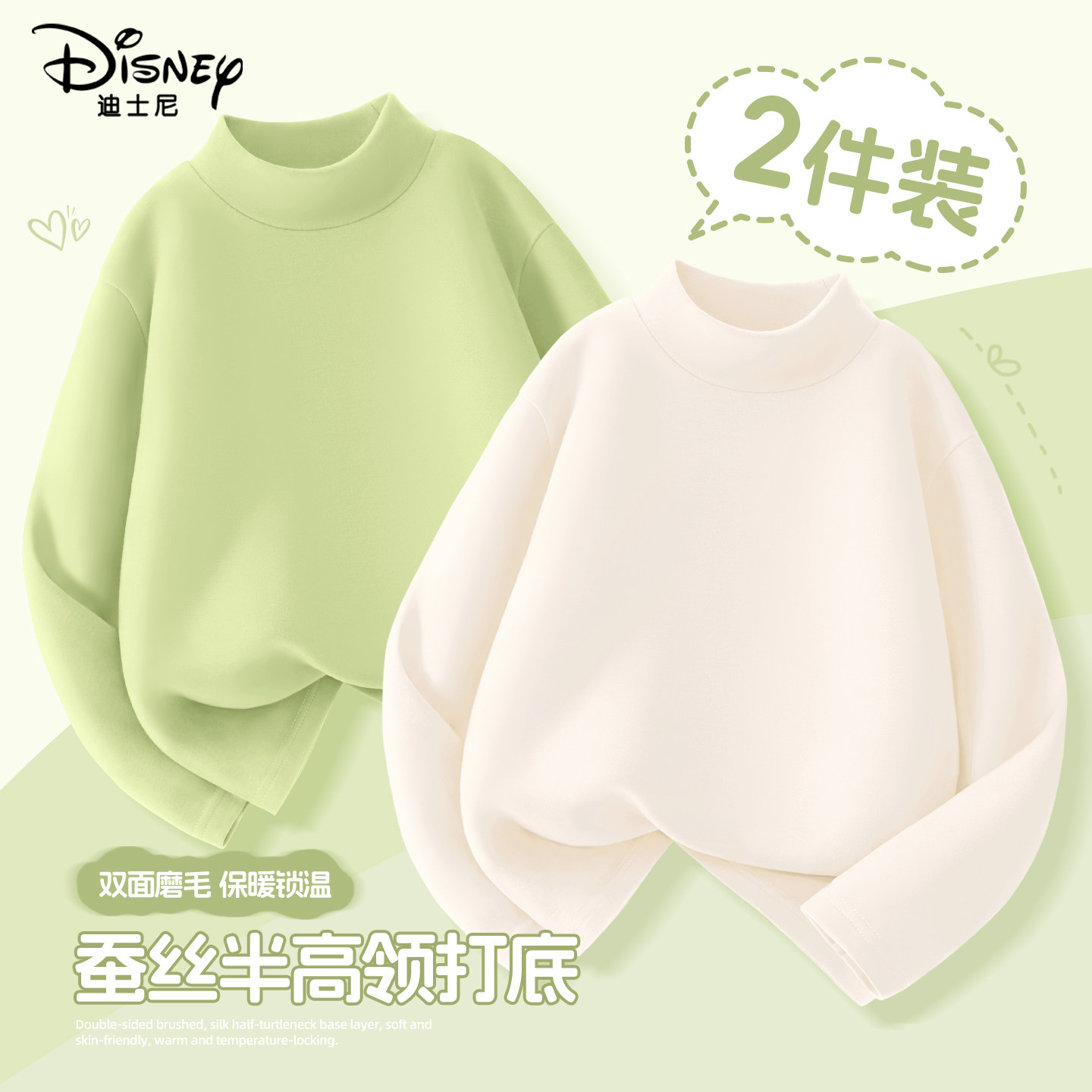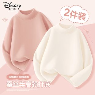 迪士尼儿童白色打底衫 秋冬内搭德绒半高领女大童保暖内衣男童秋衣