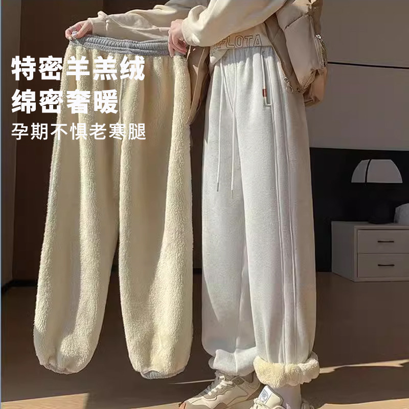 孕妇装 婧麒羊羔绒孕妇裤 子冬季 无托腹加绒加厚卫裤 秋冬外穿运动裤