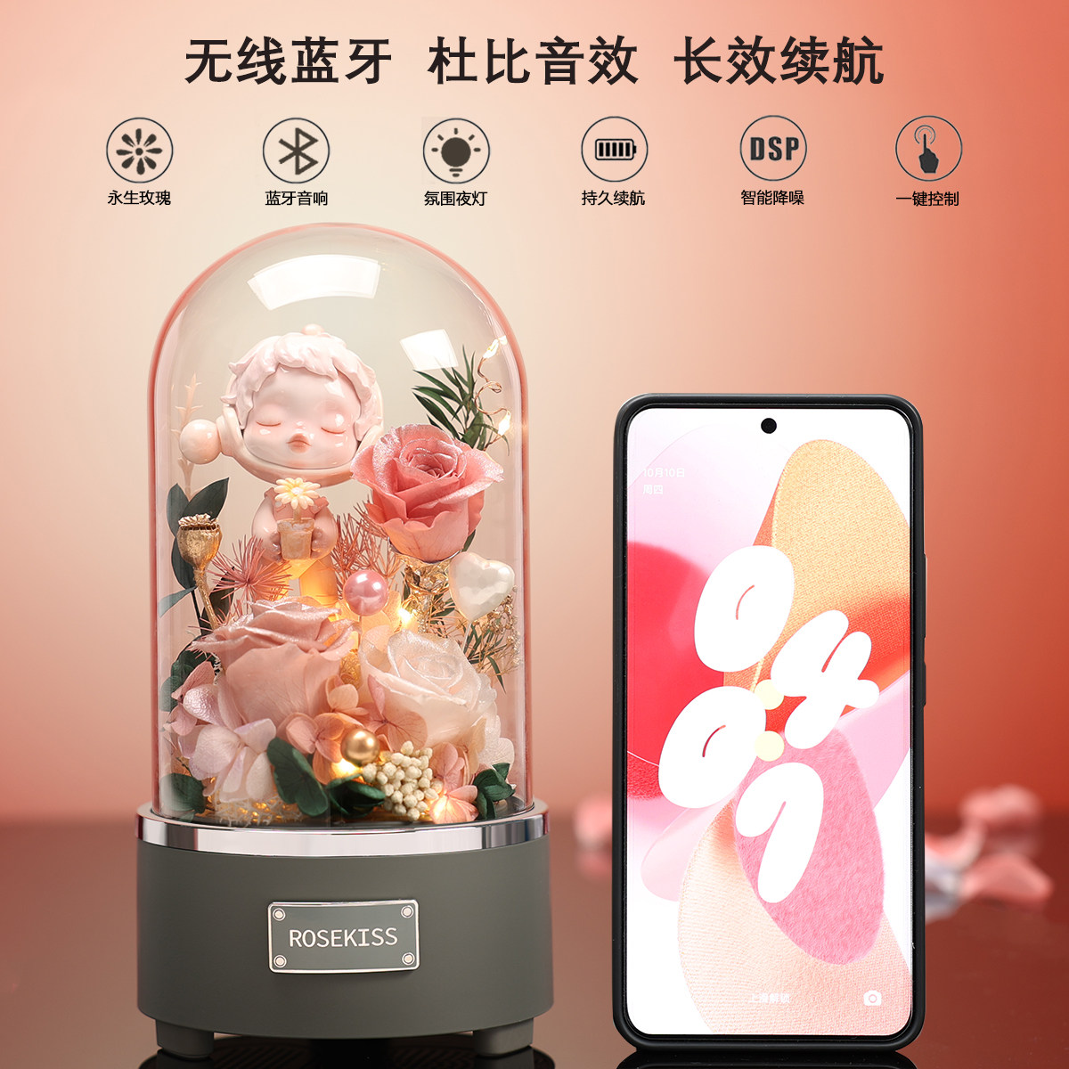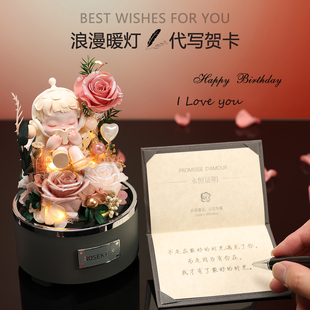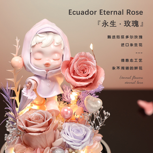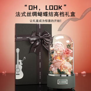 元 旦跨年礼物永生花生日送女友妈妈浪漫玫瑰花玻璃罩仿真花束摆件