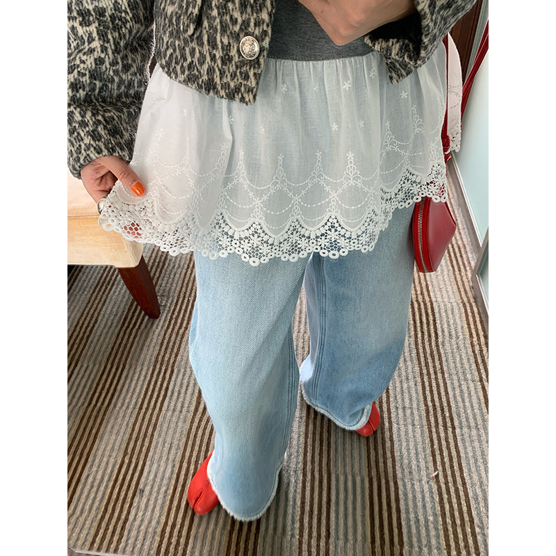 设计感蕾丝拼接上衣内搭长袖 女2025新款 T恤小个子 打底衫 今屿花花