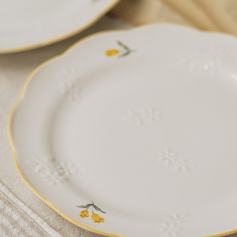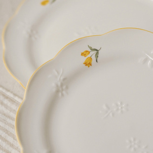 复古郁金香波浪边陶瓷甜品盘 花边椭圆早餐盘家用菜盘果盘高颜值