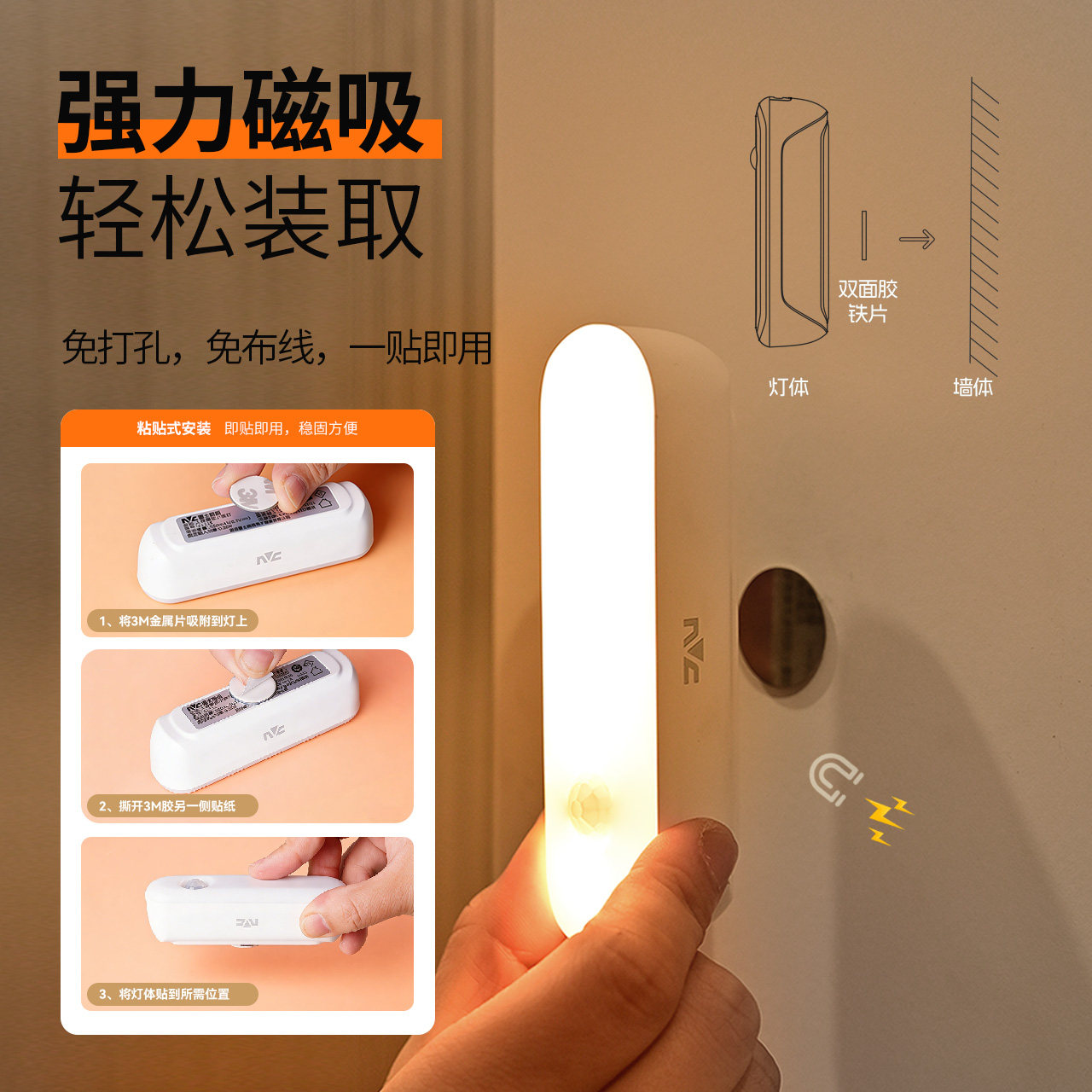 雷士照明智能人体感应灯小夜灯家用床头充电入户过道厕所人来即亮