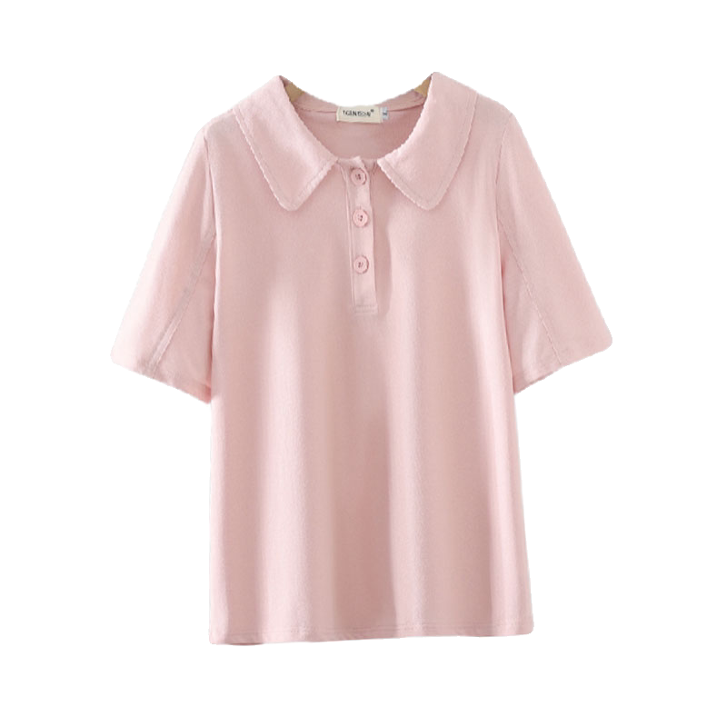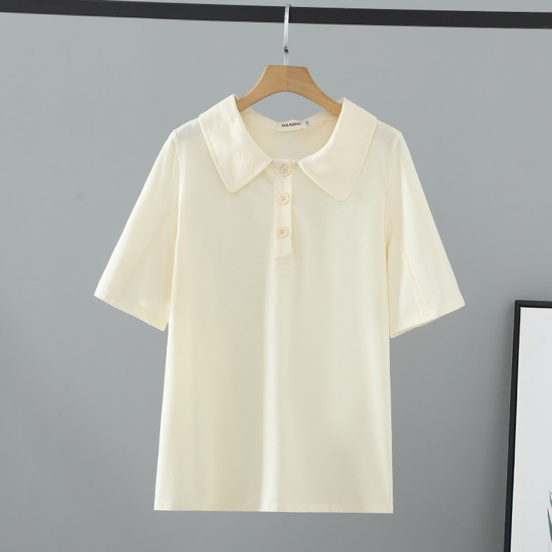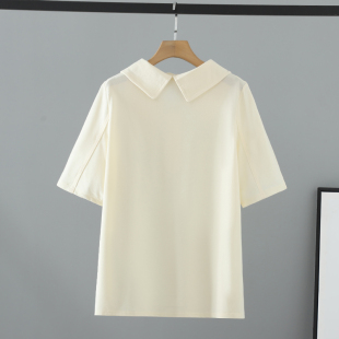 设计感韩系短袖 胖mm女装 纯色大码 2026衬衫 盐系娃娃翻领上衣女 夏装