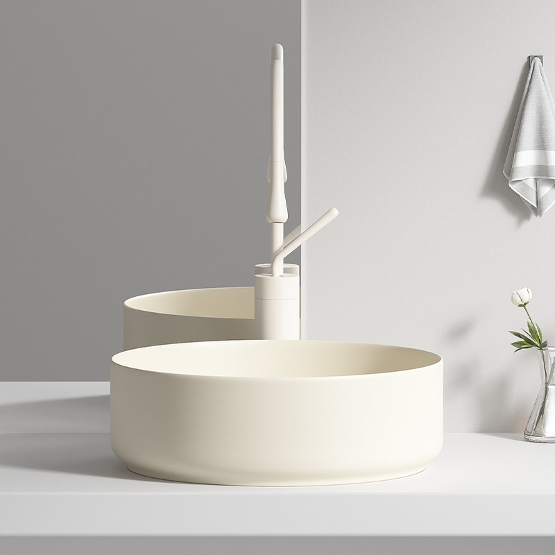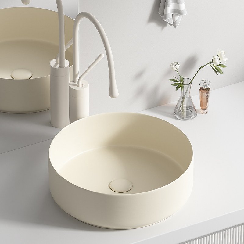 奶油风圆形台上盆家用洗手盆陶瓷洗脸盆卫生间洗漱面盆阳台洗手池
