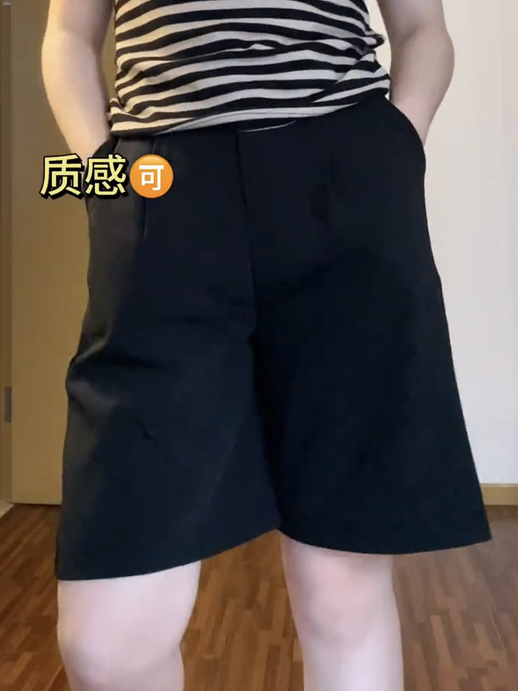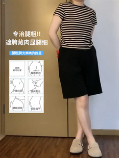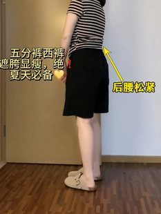 黑色西装 五分裤 短裤 高腰小个子遮胯显瘦a字阔腿中裤 女夏薄款 大码
