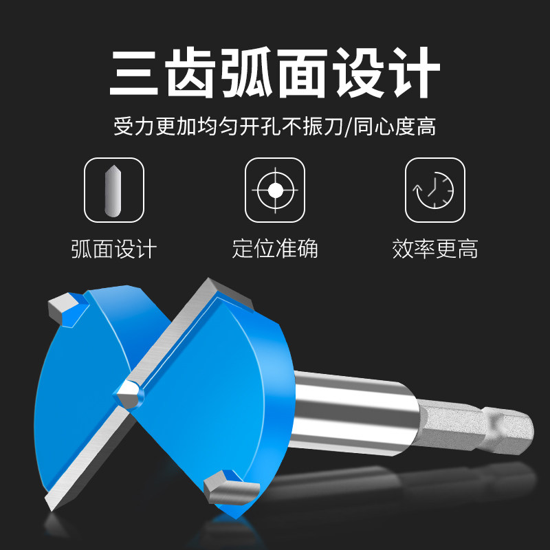 名刃六角柄木工开孔器木板圆孔钻头圆形打孔器门锁铰链6.35柄木钻
