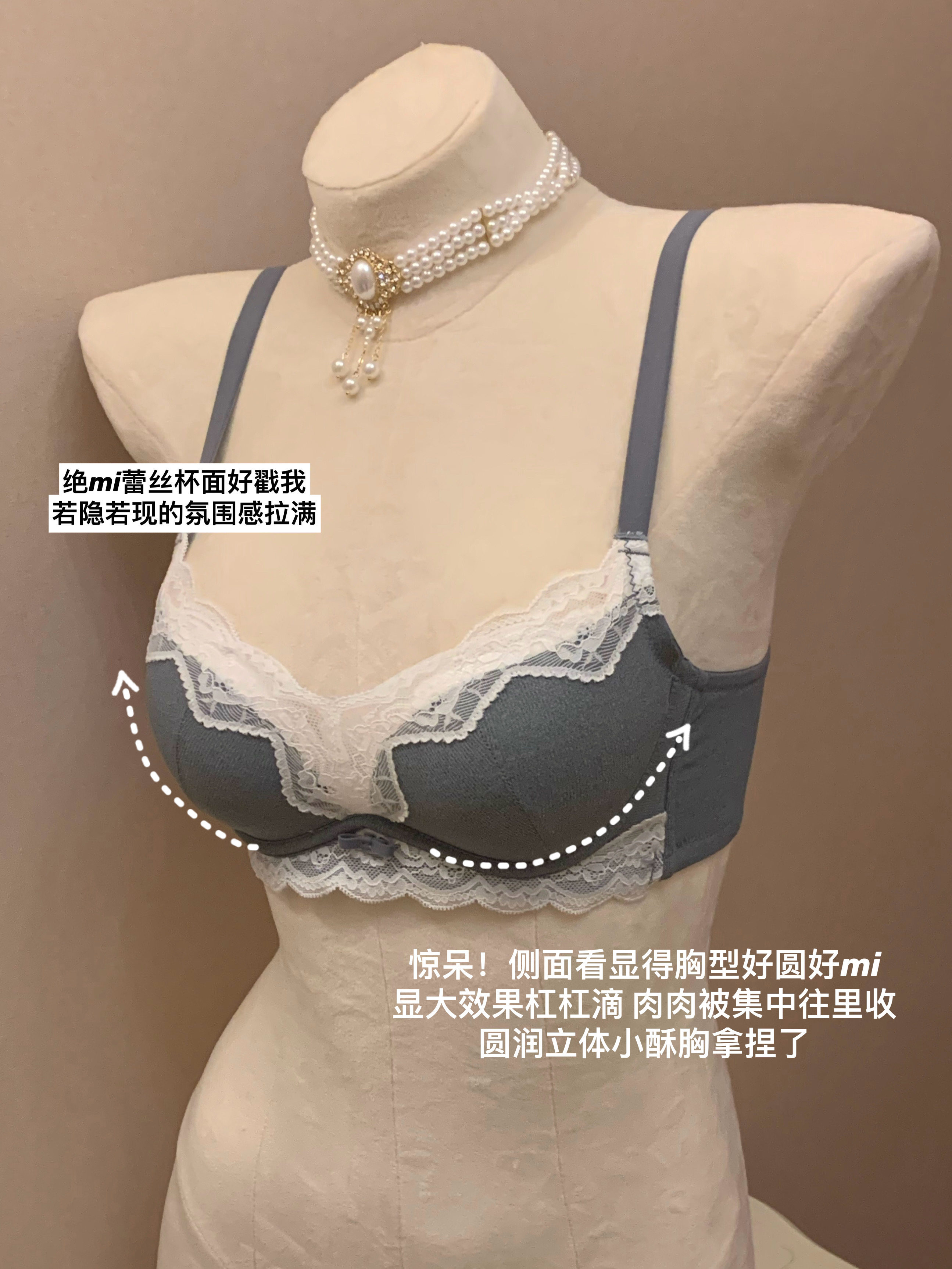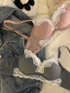 法式 内衣女小胸聚拢显大上托无钢圈收副乳防下垂蕾丝边文胸罩套装