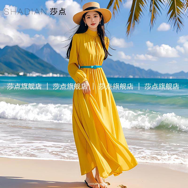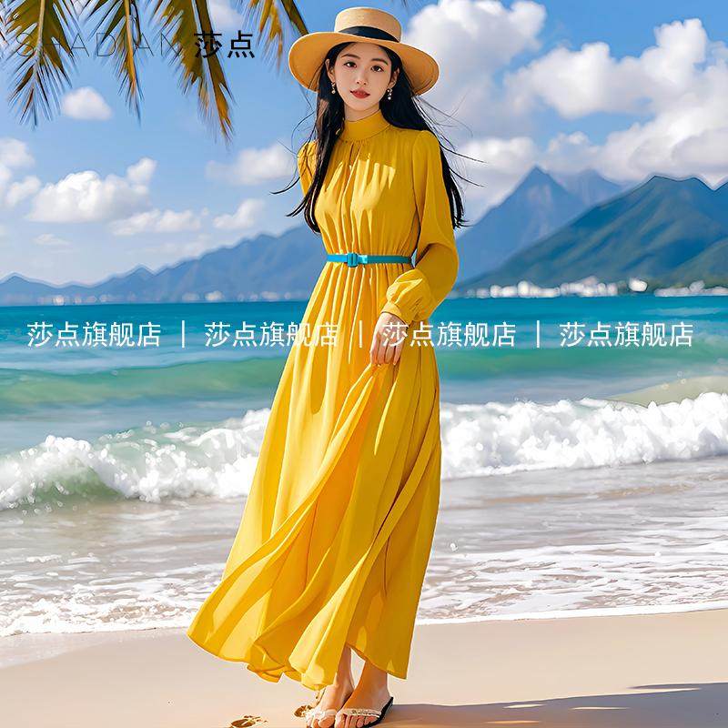新款 气质显瘦连衣裙2025旅游拍照高级感超仙波西米亚大摆长裙 女装