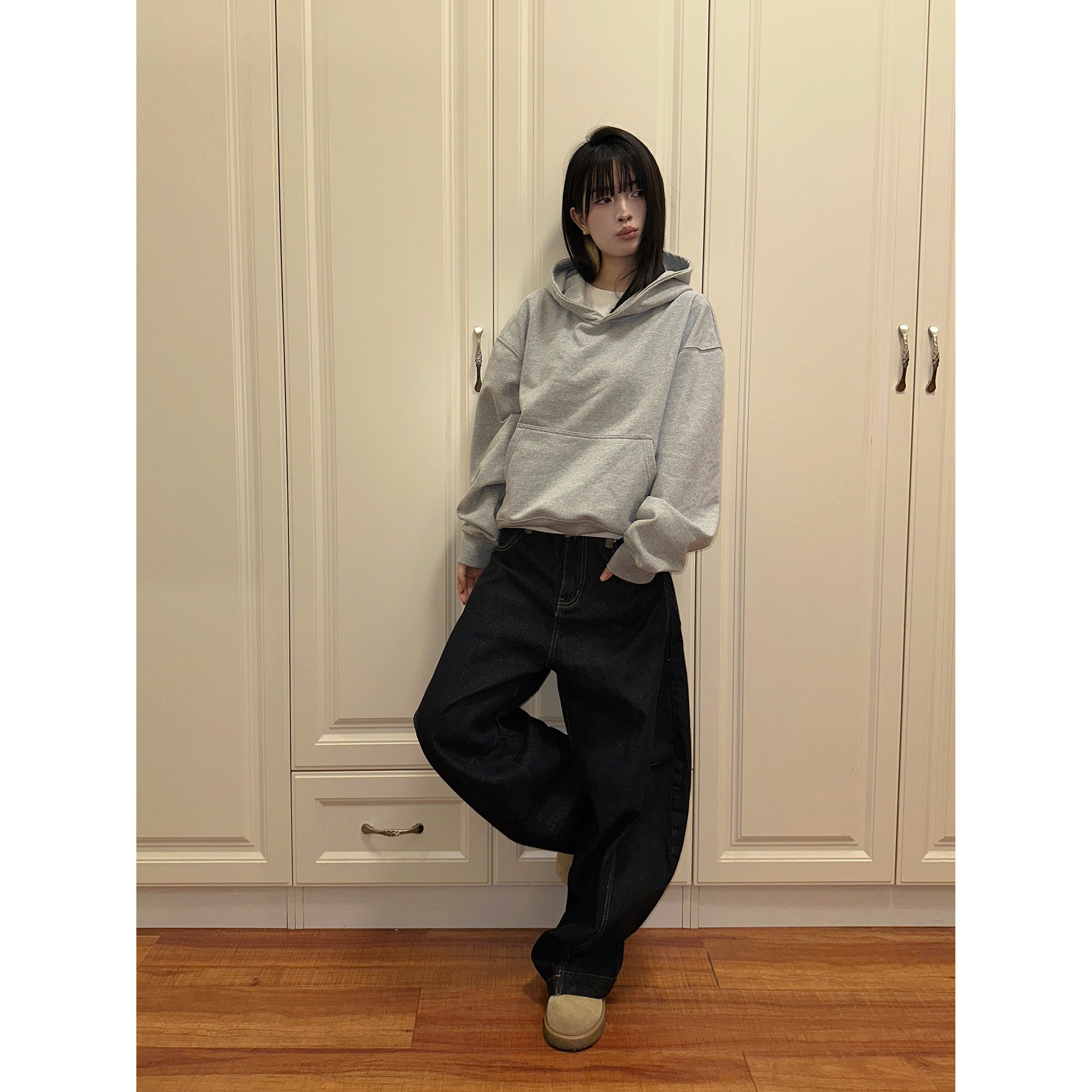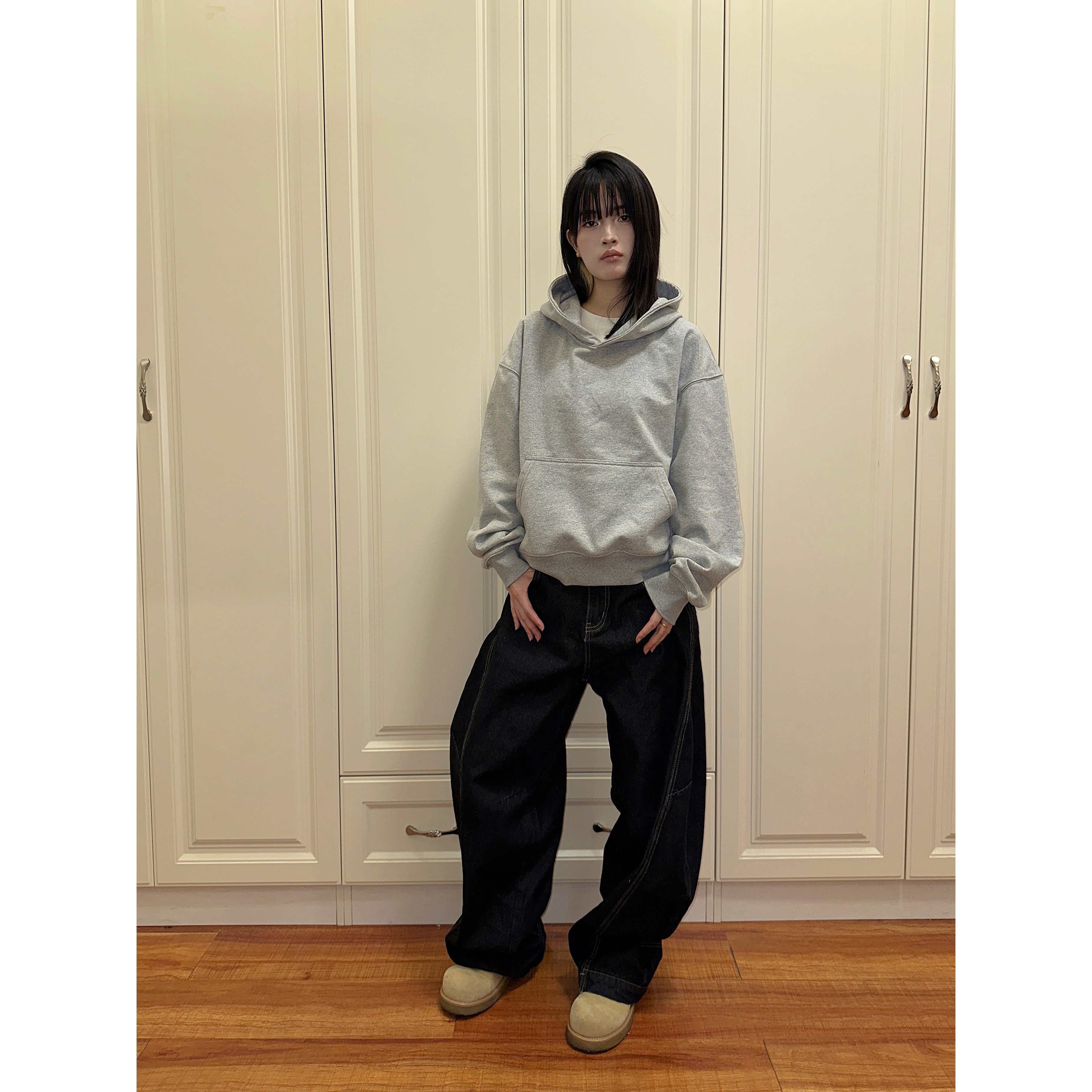 纯色连帽卫衣秋冬内搭男女ins 百搭简约cleanfit短款 F383 2026美式