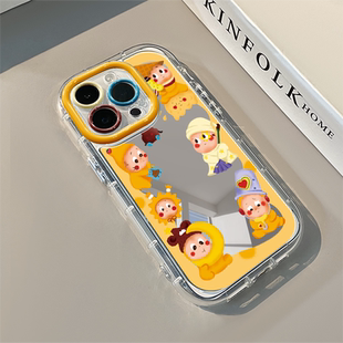 卡通小黄人适用于苹果16promax镜面奶油壳iPhone15手机壳华为p可爱小米15防摔保护套mate70小众新款 ins风