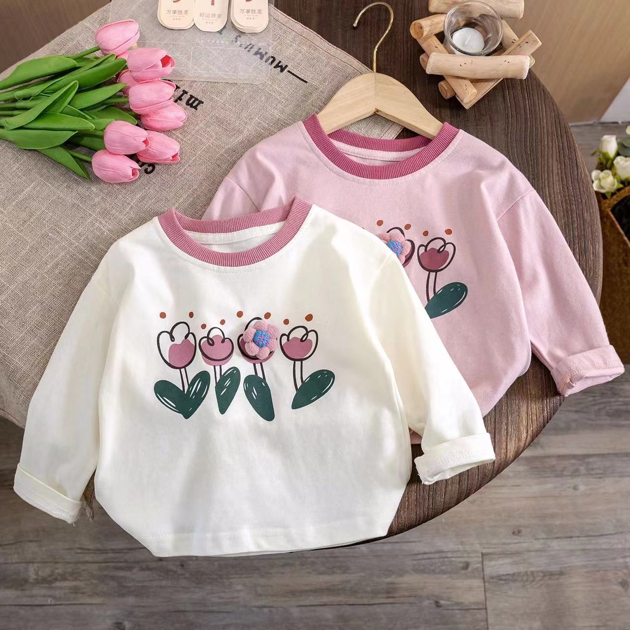 花朵立体打底衫 女童春秋新款 女宝宝长袖 T恤童装 儿童百搭上衣 长袖