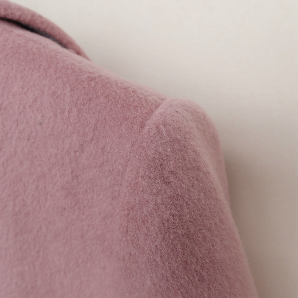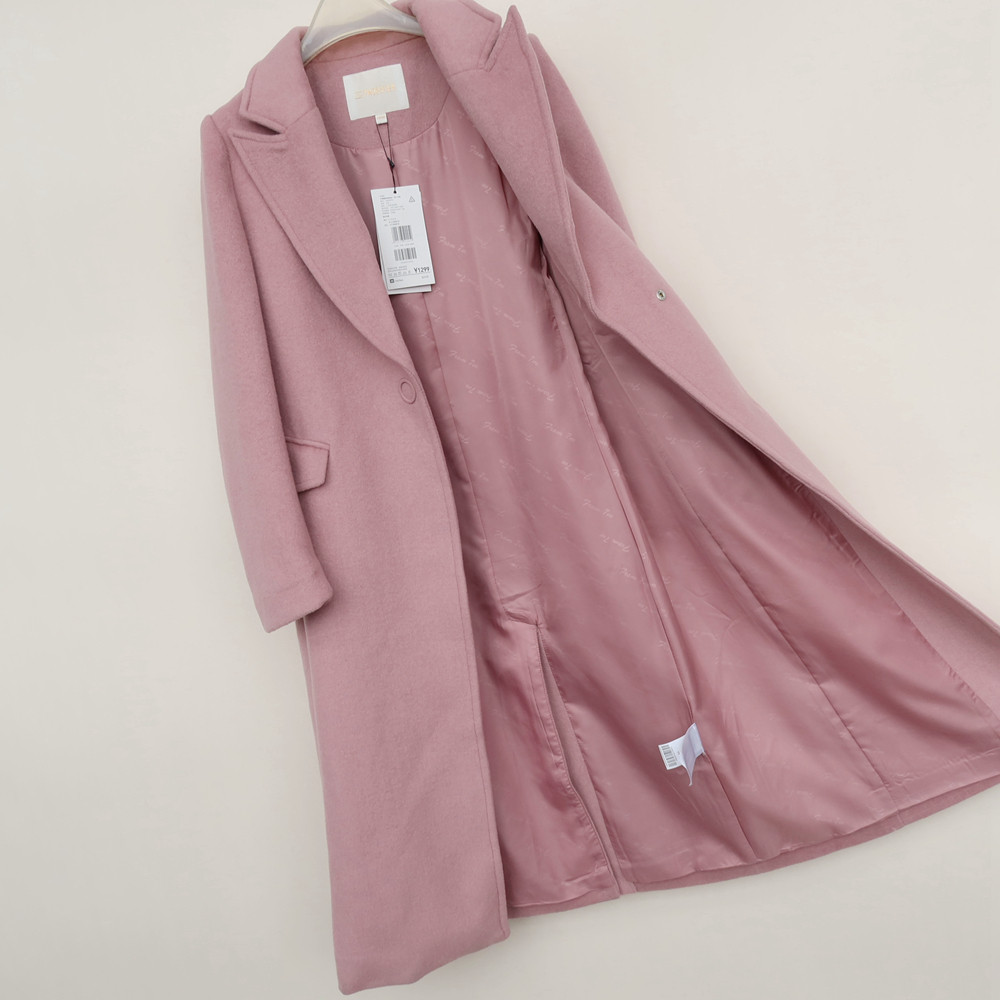 长款 女冬修身 厚羊毛混纺呢大衣8B9433浅灰粉 S专柜正品 拉系列