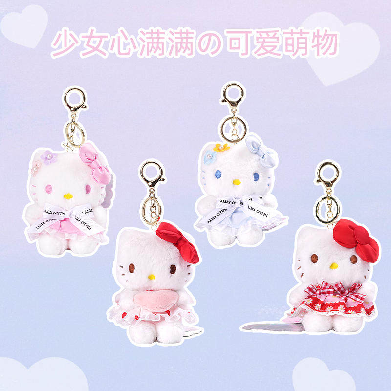 正版 三丽鸥hellokitty毛绒挂件可爱kt猫包包挂饰凯蒂猫钥匙扣玩偶