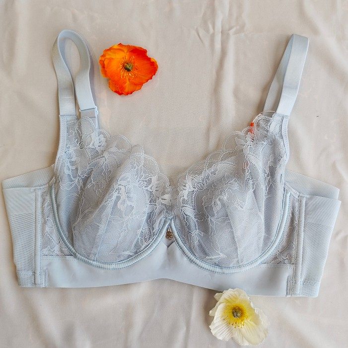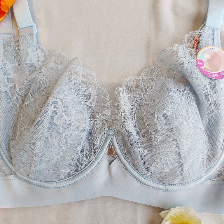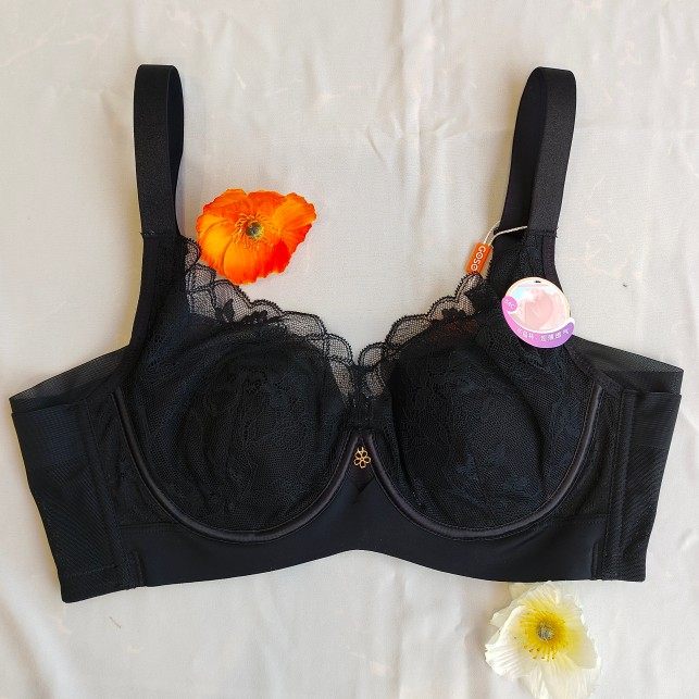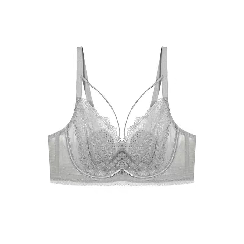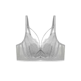 润微茶肌内衣女士大胸显小薄款 上托防下垂蕾丝文胸 收副乳聚拢大码