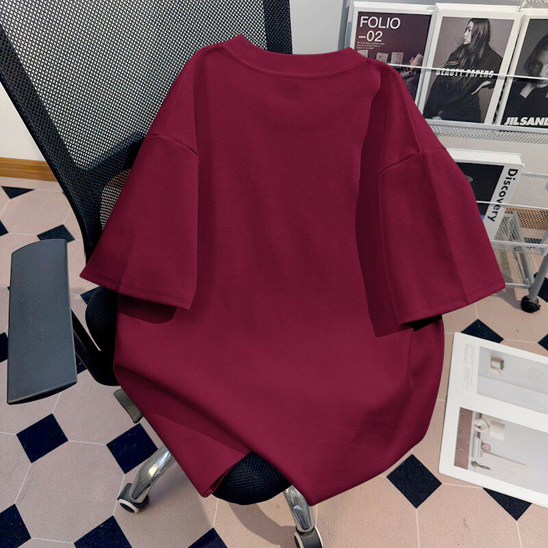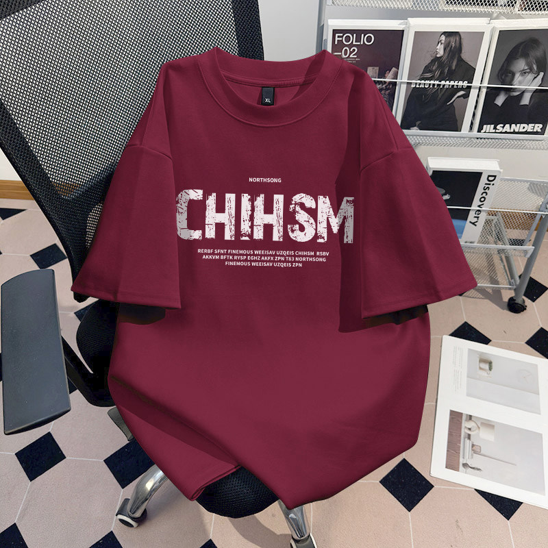 男款 纯棉t恤夏季 休闲痞帅百搭上衣 潮牌酒红色重磅短袖 WASSUP美式