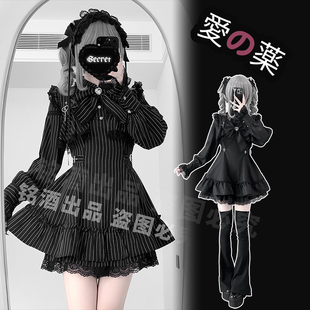 铭酒学园y2k亚文化量产型蕾服秋冬季 连衣裙两件套 黑红蕾丝边长袖