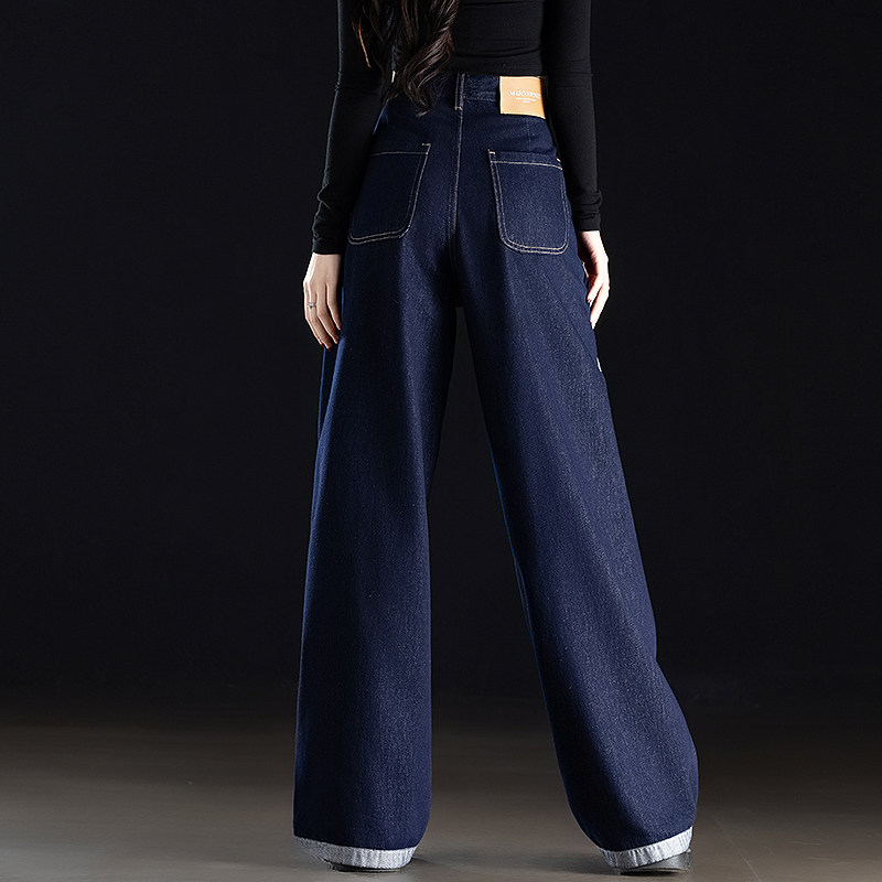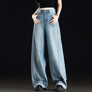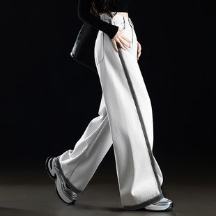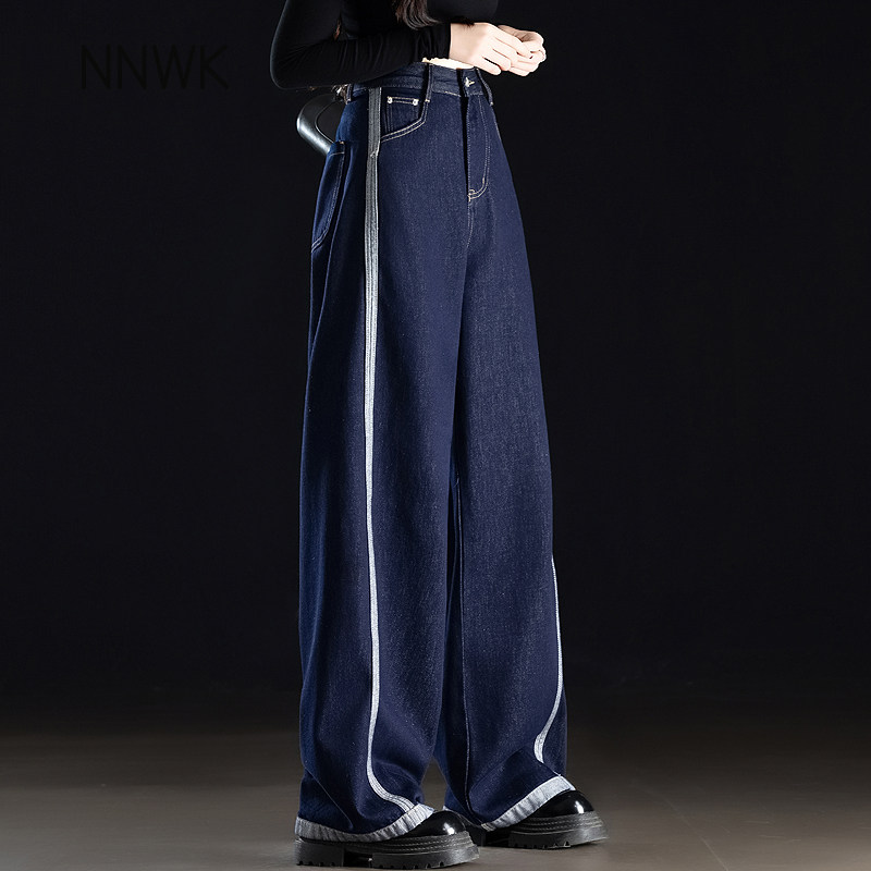 版 春秋季 型超好看女款 裤 侧条纹阔腿牛仔裤 子宽松直筒裤 女2025新款