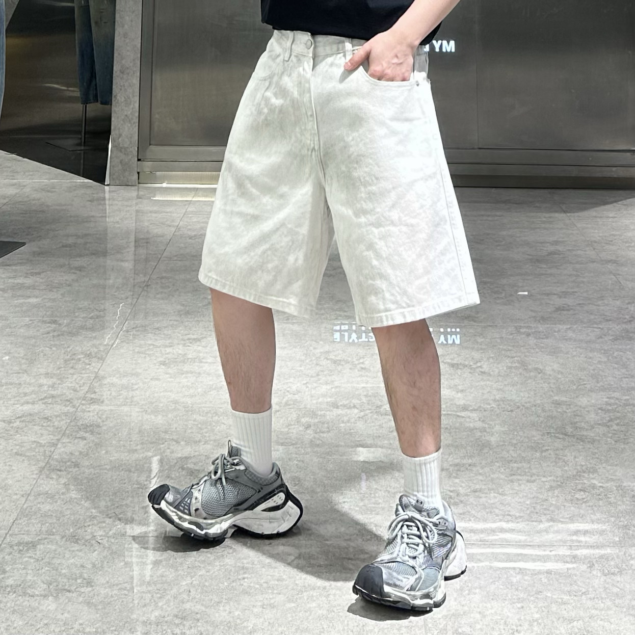 baggy版 JCAESAR 立体抓痕猫须 DENIM压褶白色阔腿牛仔裤 型 WHITE