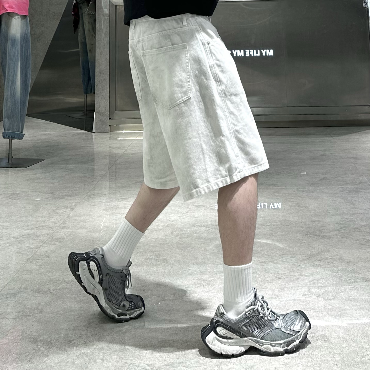 棉籽壳cleanfit宽松直筒休闲裤 复古白色牛仔裤 男秋 轻美式 马登工装