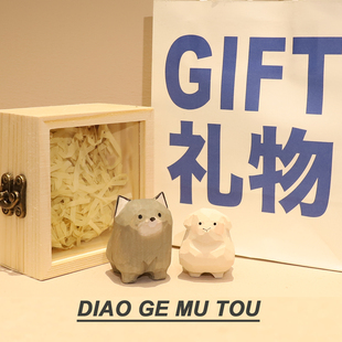 手工木雕小羊小狼木质小灰狼小绵羊桌面摆件情侣圣诞节礼物可爱女