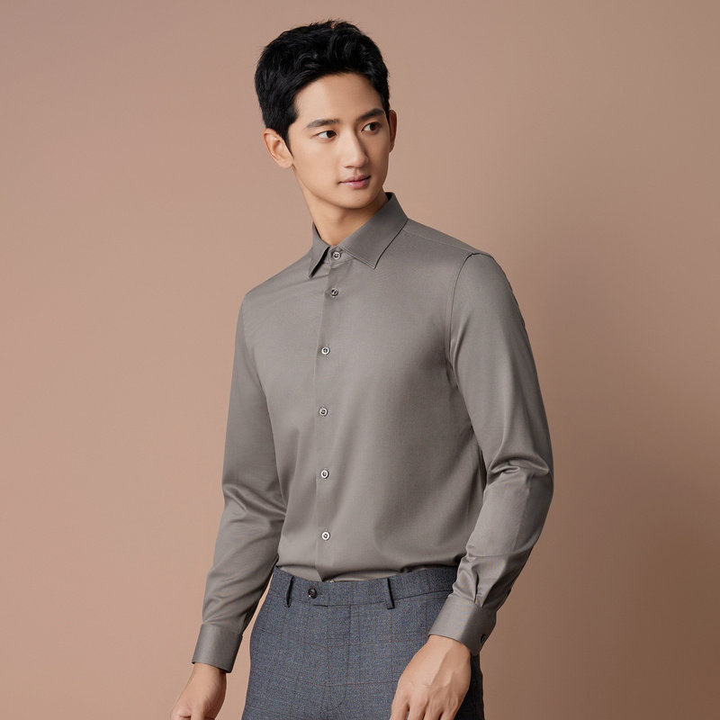 正装 堡尼春夏新品 修身 衬衫 休闲衬衣男TGQ38041A 商务羊毛混纺长袖